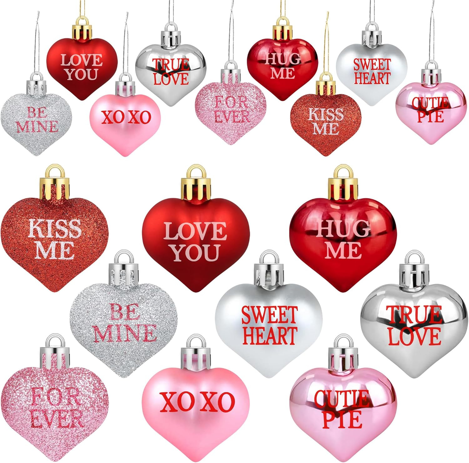 36 PCS Valentine's Day Heart Ornaments - Red, Pink, Silver Hanging Decorations