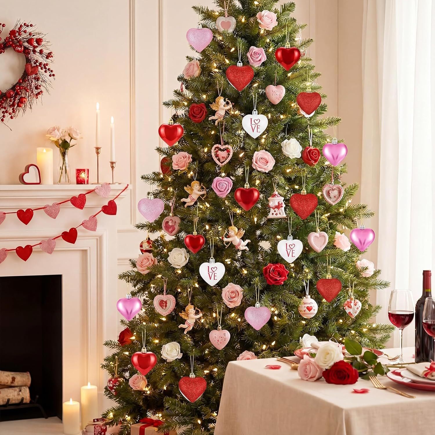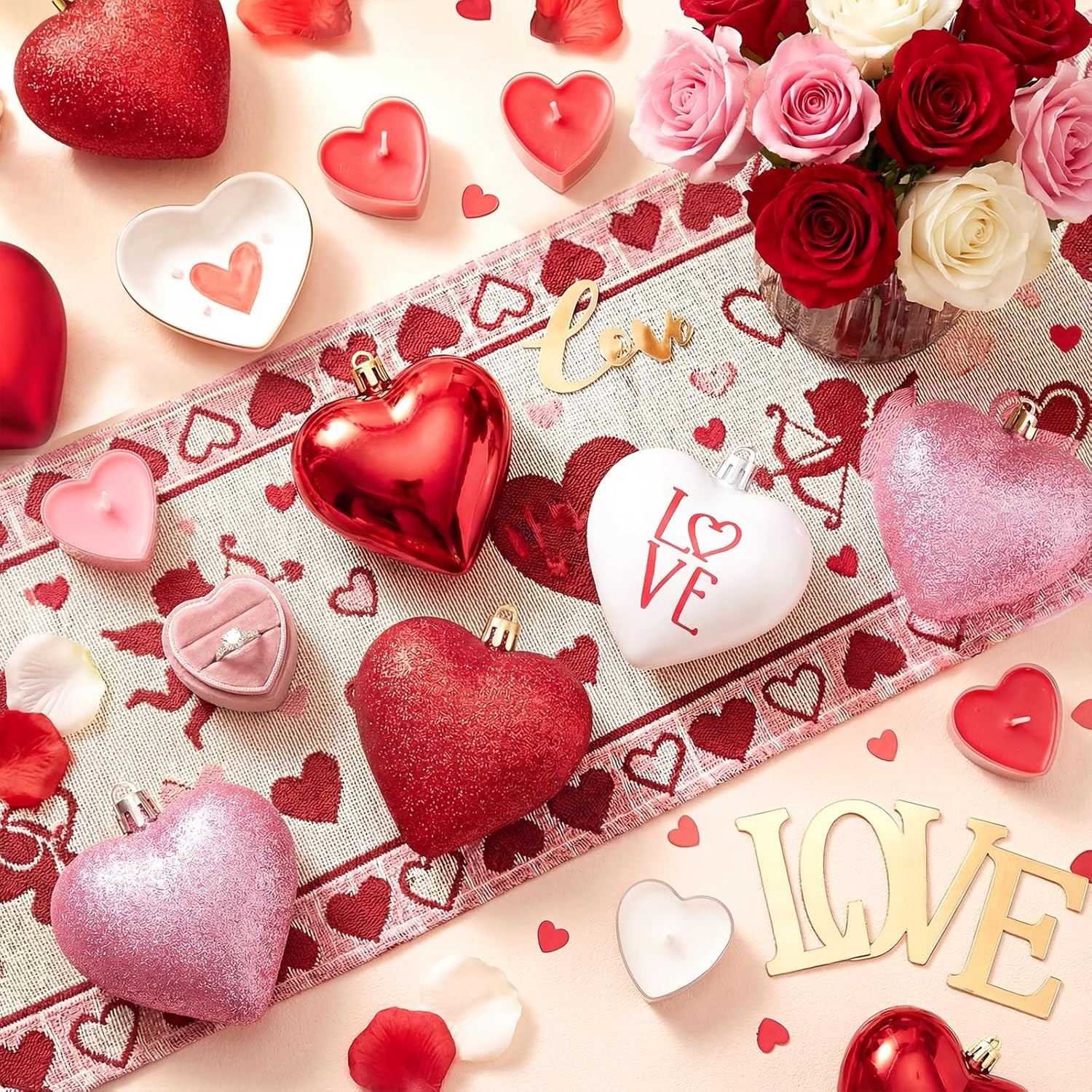 Pink Heart Ornaments Set of 24 for Valentine's Day and Wedding Decor