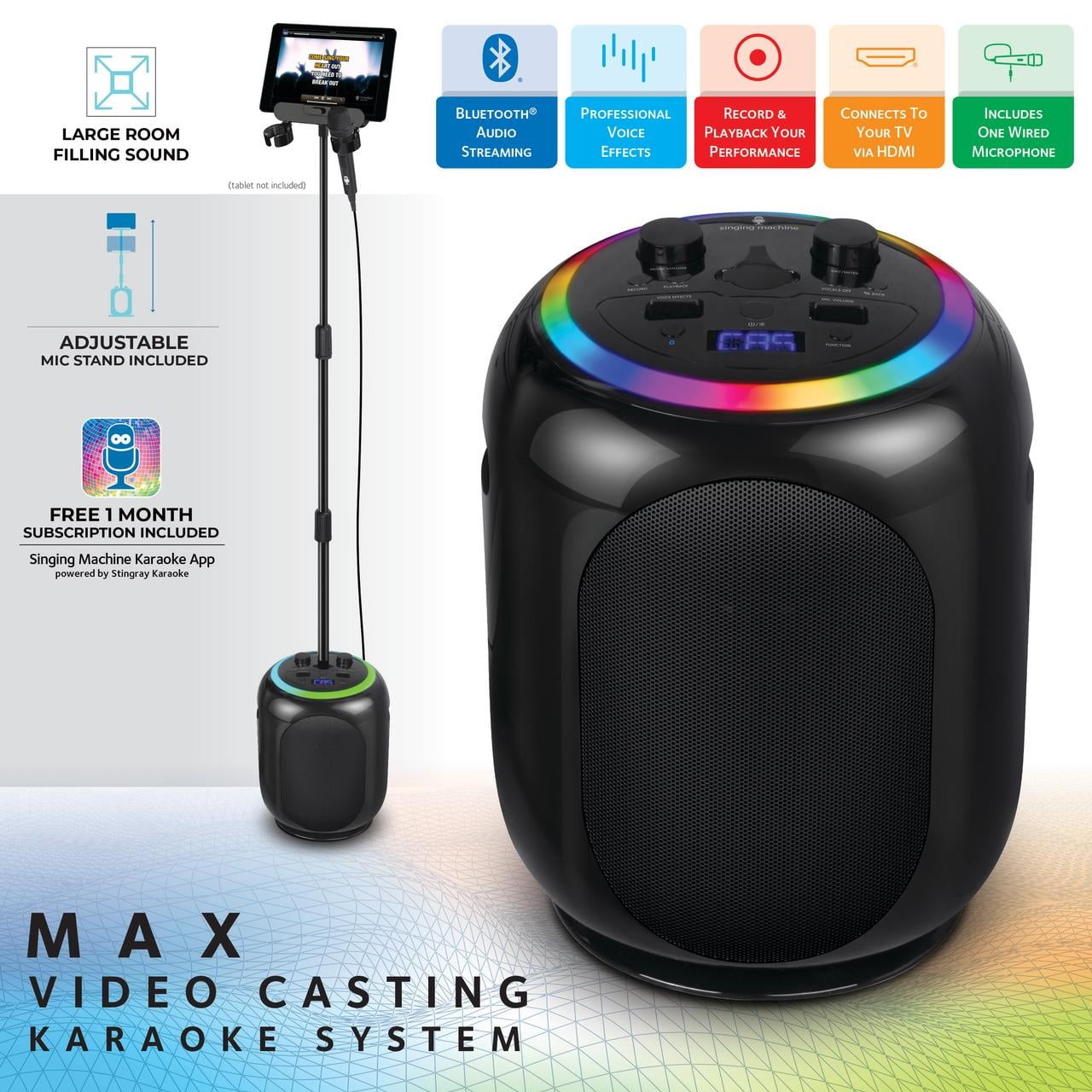 Singing Machine Sing Cast Max Stand-Alone Karaoke Machine, Stand, LED