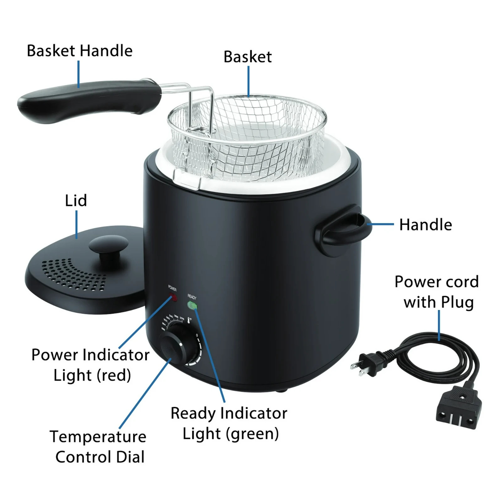 Mainstays 2QT Electric Deep Fryer, Matte Black - Household, 1000W