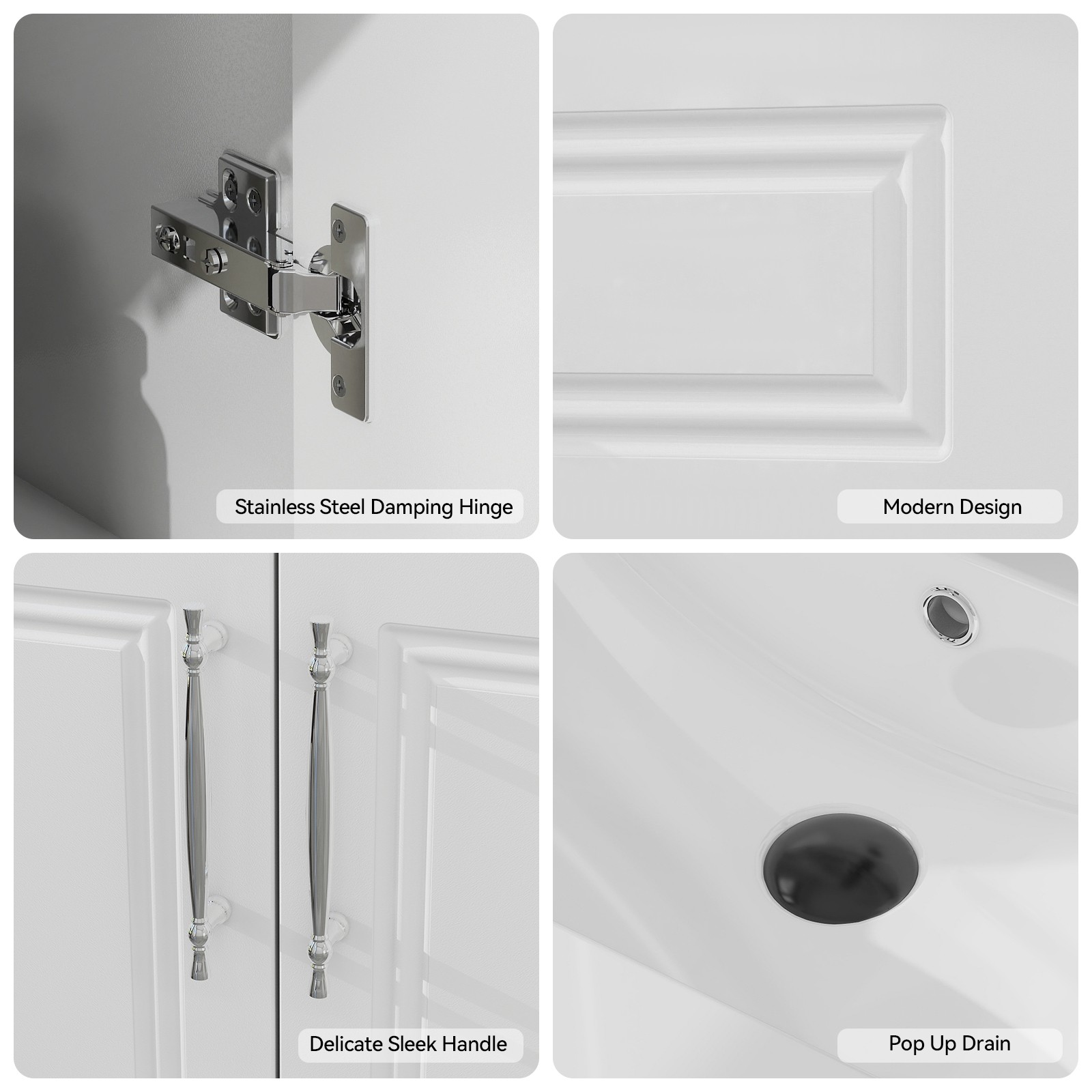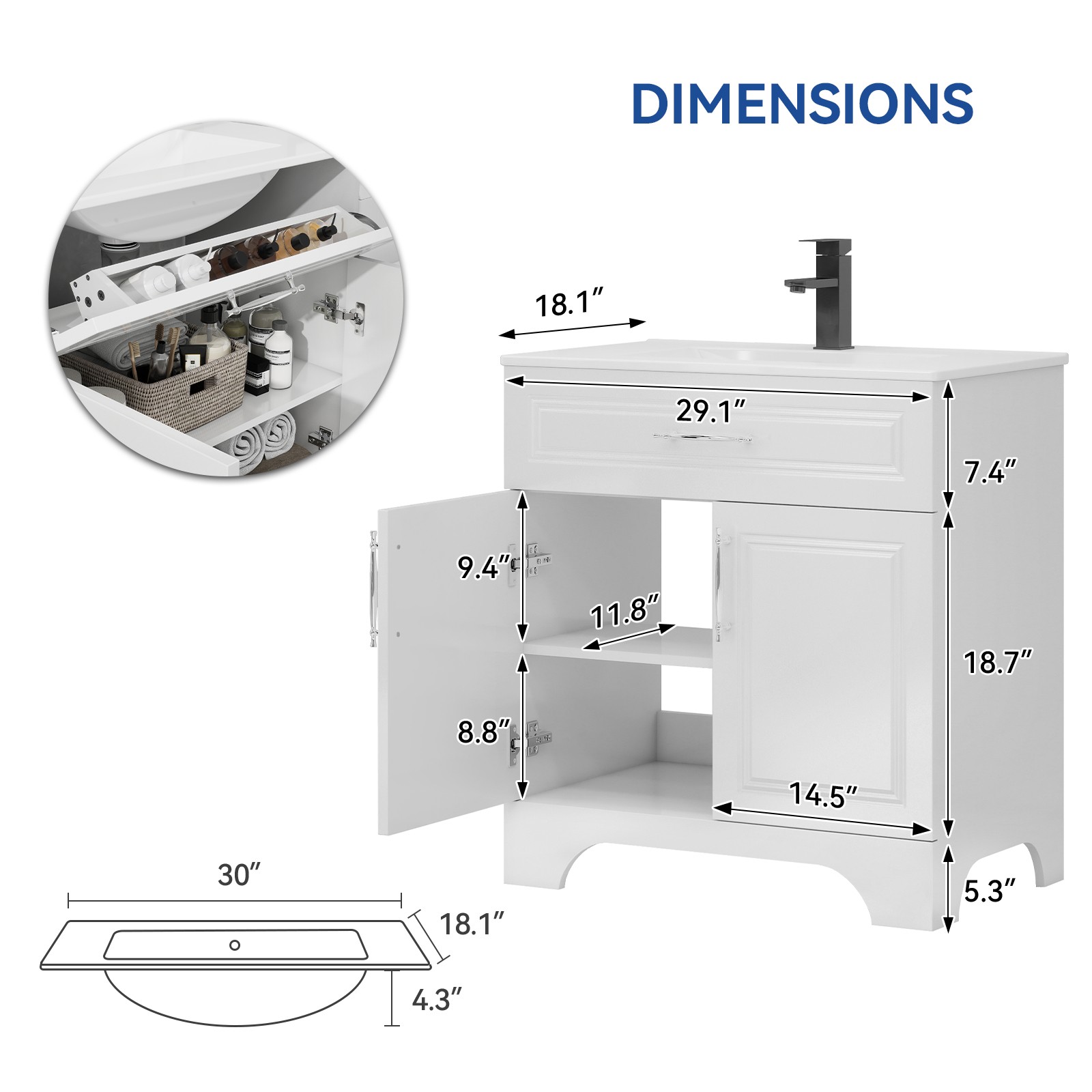 30 Inch Bathroom Vanity with Ceramic Sink - Soft-Close Doors Tip-Out Drawer
