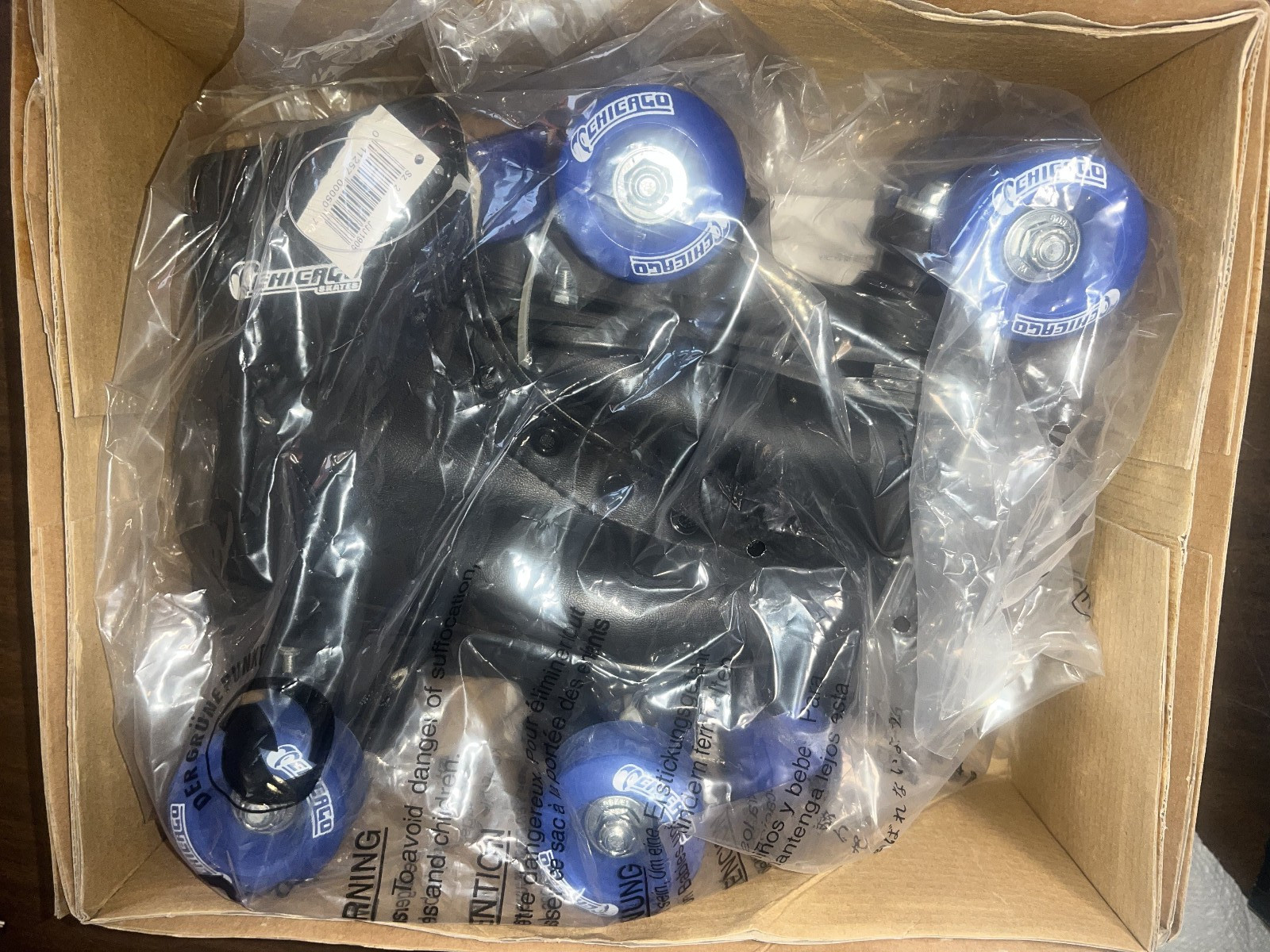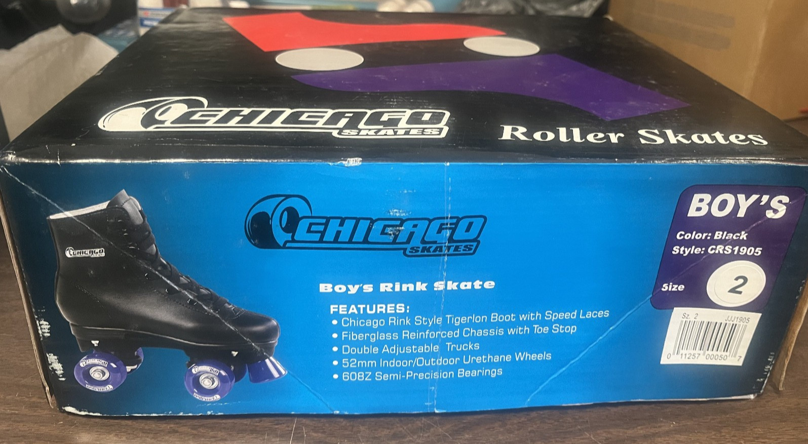 Chicago Skates Boys Black Size 2, TIGERLON BOOTS, BLUE WHEELS, NEW IN BOX