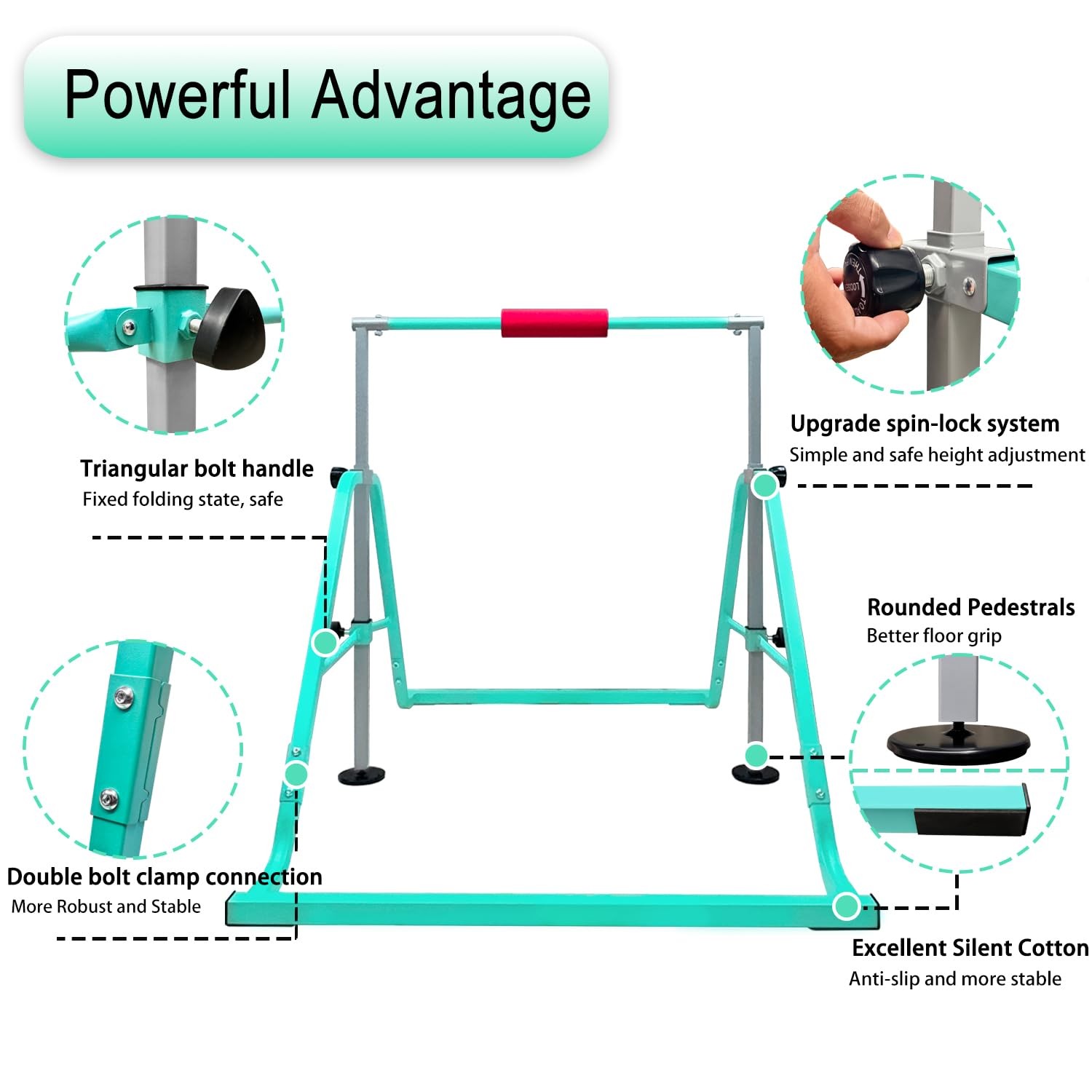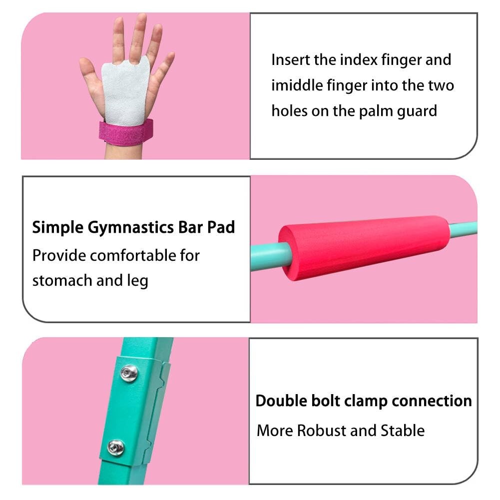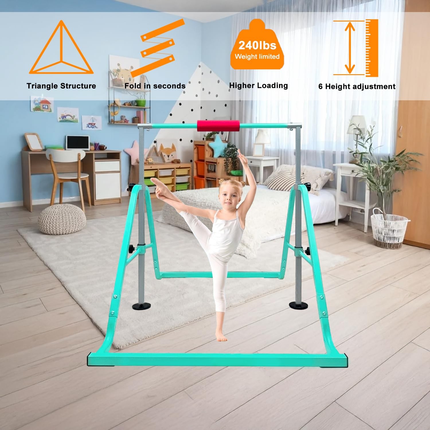 Gymnastics Bar for 3-9, Foldable Adjustable 32-51, Supports 190Lbs with P...