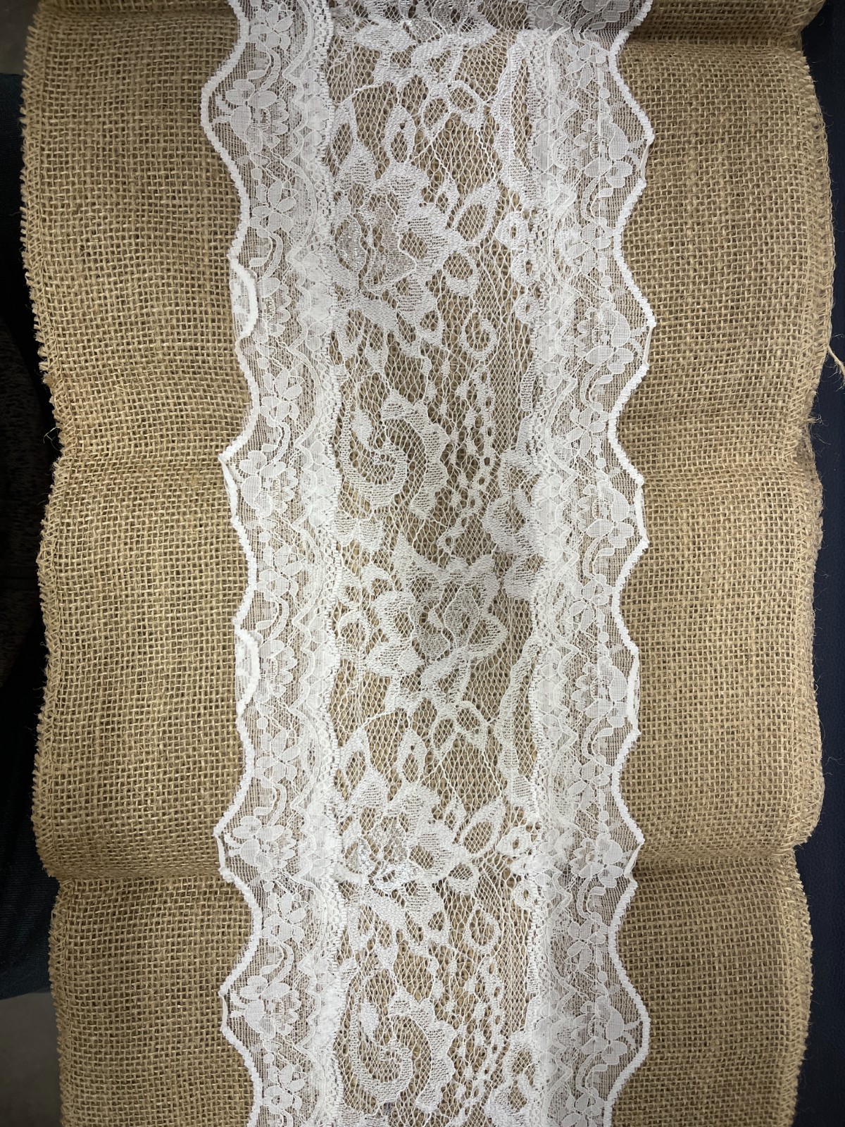 Burlap Jute Table Runner 12x110 Natural With White Middle Lace - Rustic Vintag