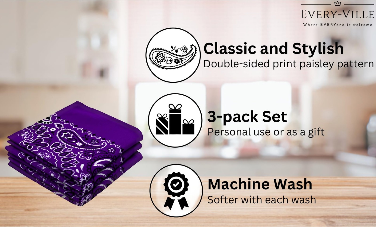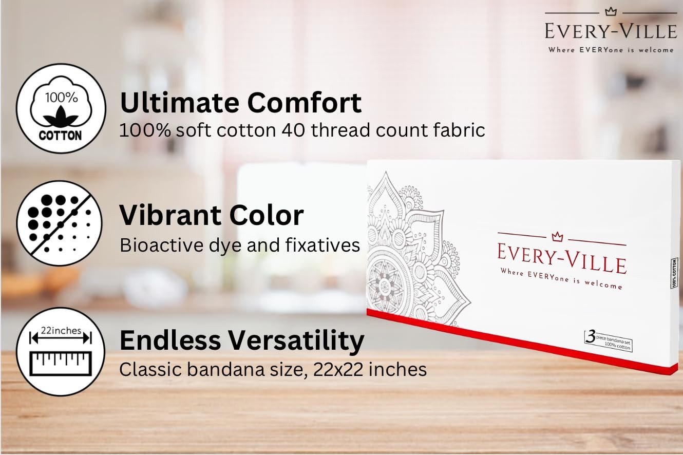 Classic Paisley Bandanas 3 Pack Gift Set 100 Cotton 22x22 Inches Accessory