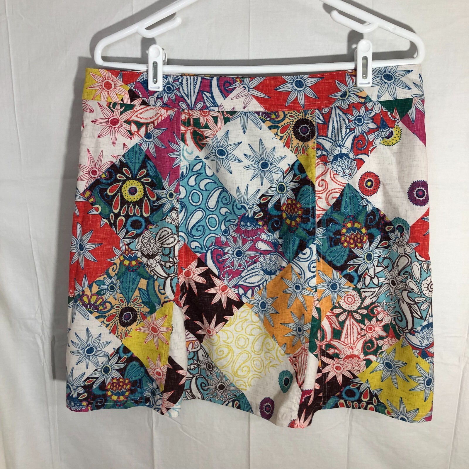 как выглядит Rip Skirt Hawaii Womens Patchwork Floral Colorful Wrap Skirt Size L Tropical Kne фото