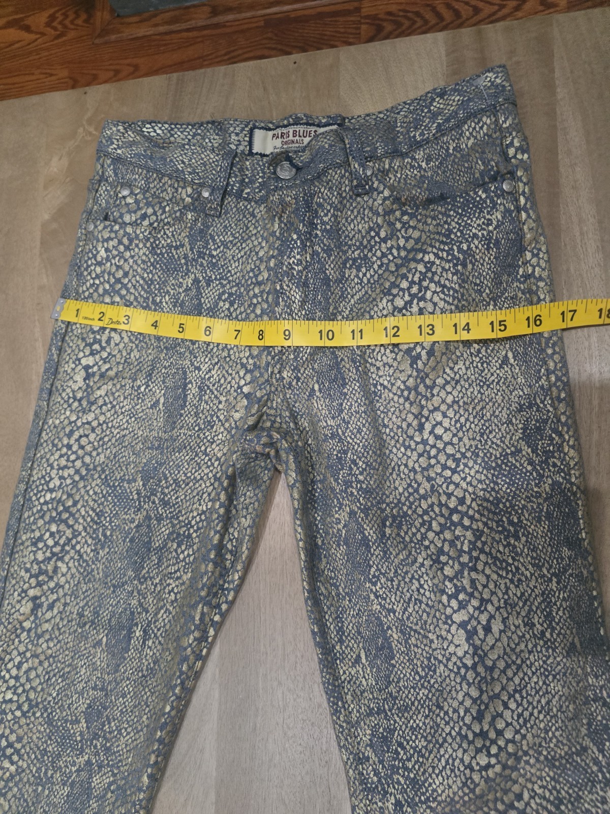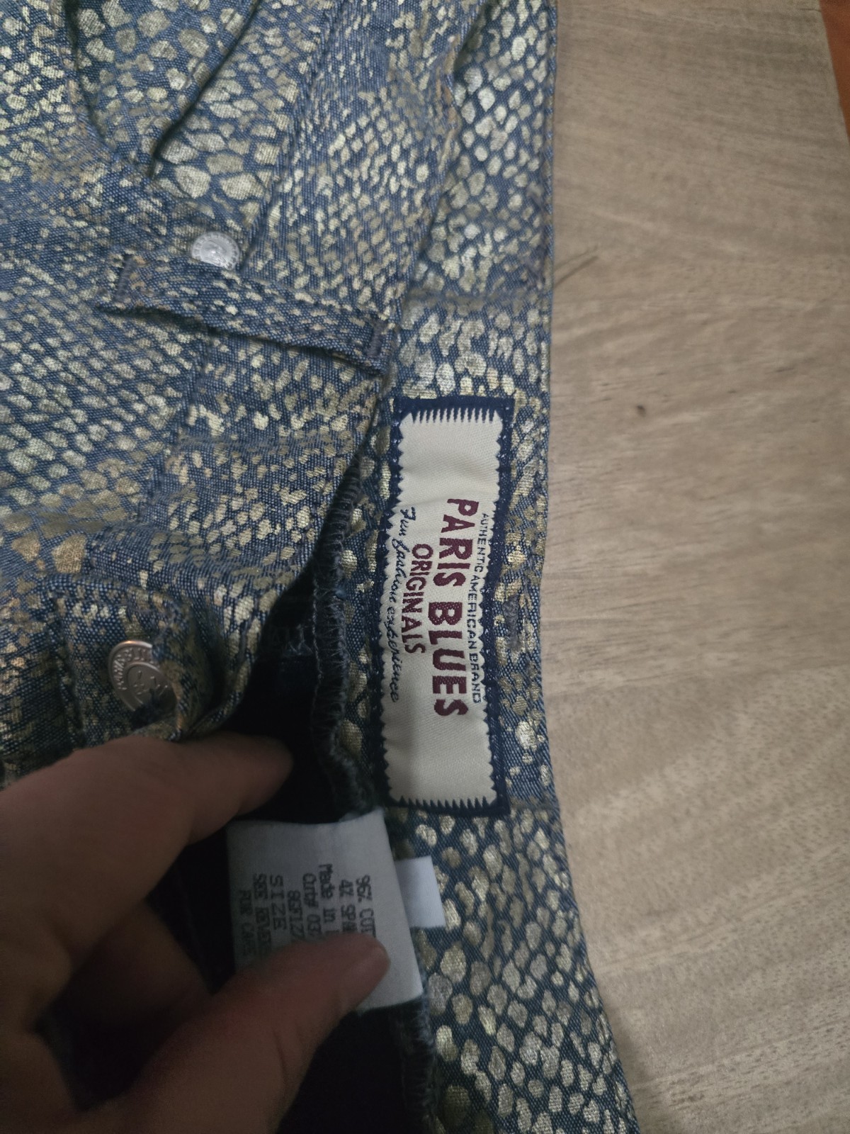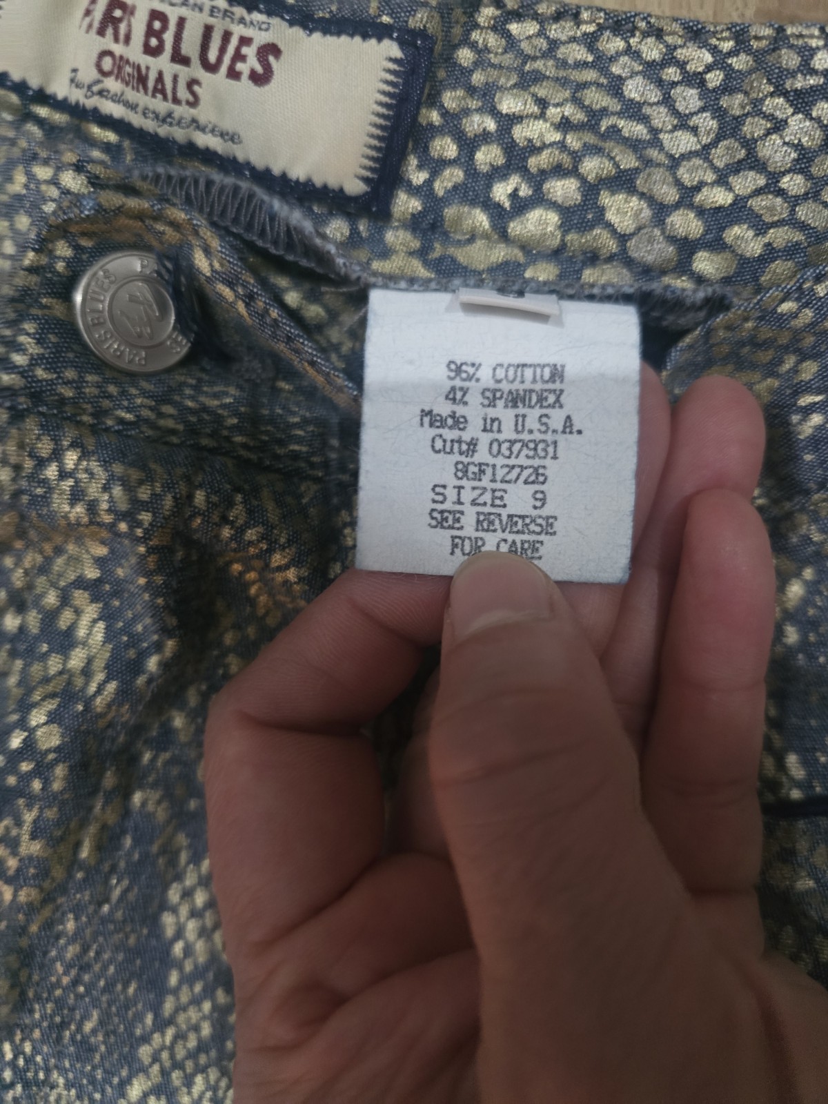 как выглядит VINTAGE Y2K Paris Blues Gold Foil Snakeskin Pants фото