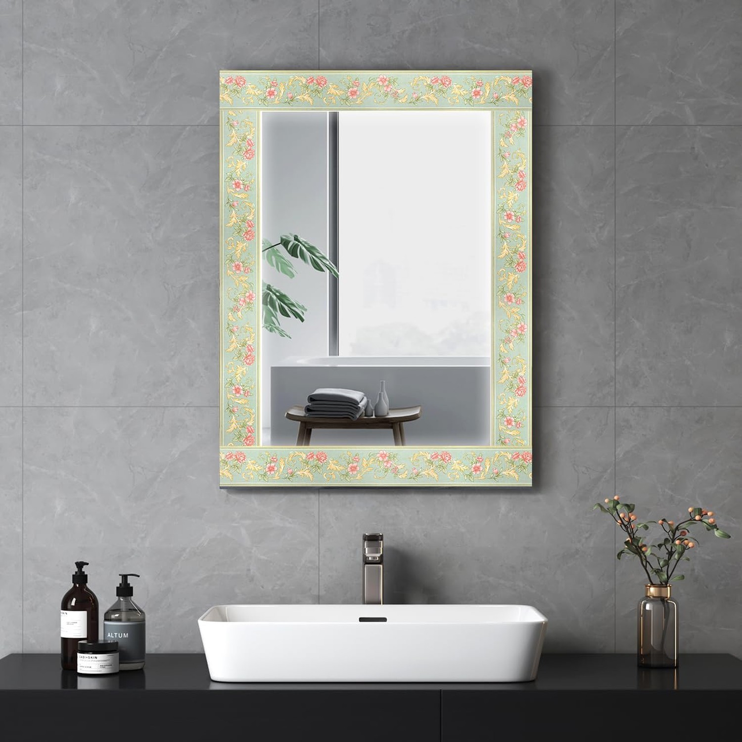 AbaBoorty Green Floral Wallpaper Border Decor 196X4.1 Peel and Stick Wall B...