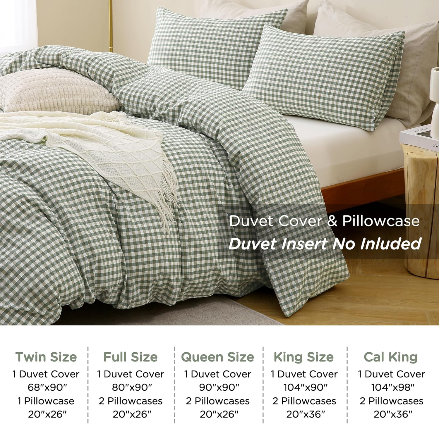 Green Gingham Duvet Cover Bedding Set 100 Washed Cotton like Linen Feel Super S