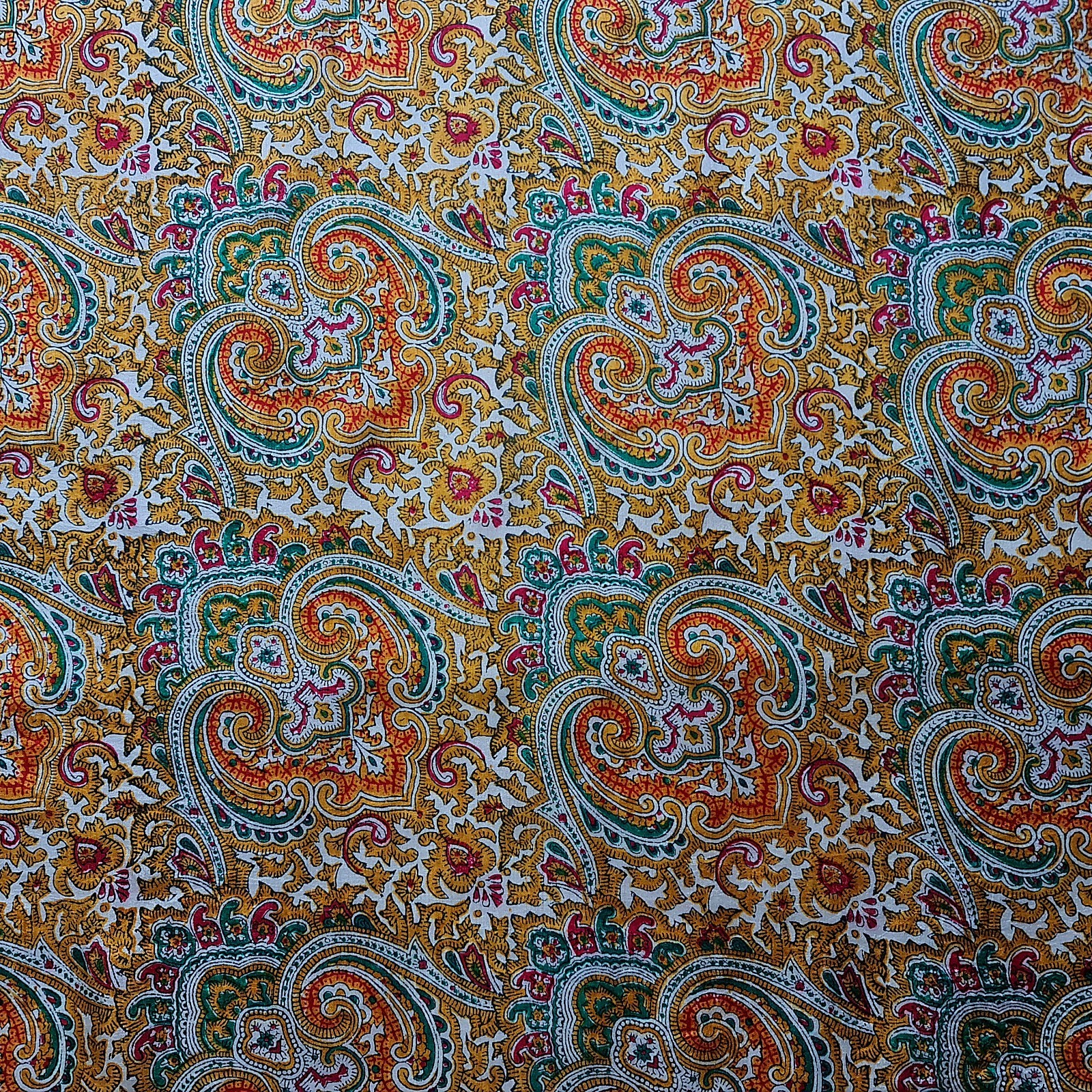 SCARF VINTAGE AUTHENTIC PAISLEY ART YELLOW RED GREEN CHIFFON SILK 35 SQUARE