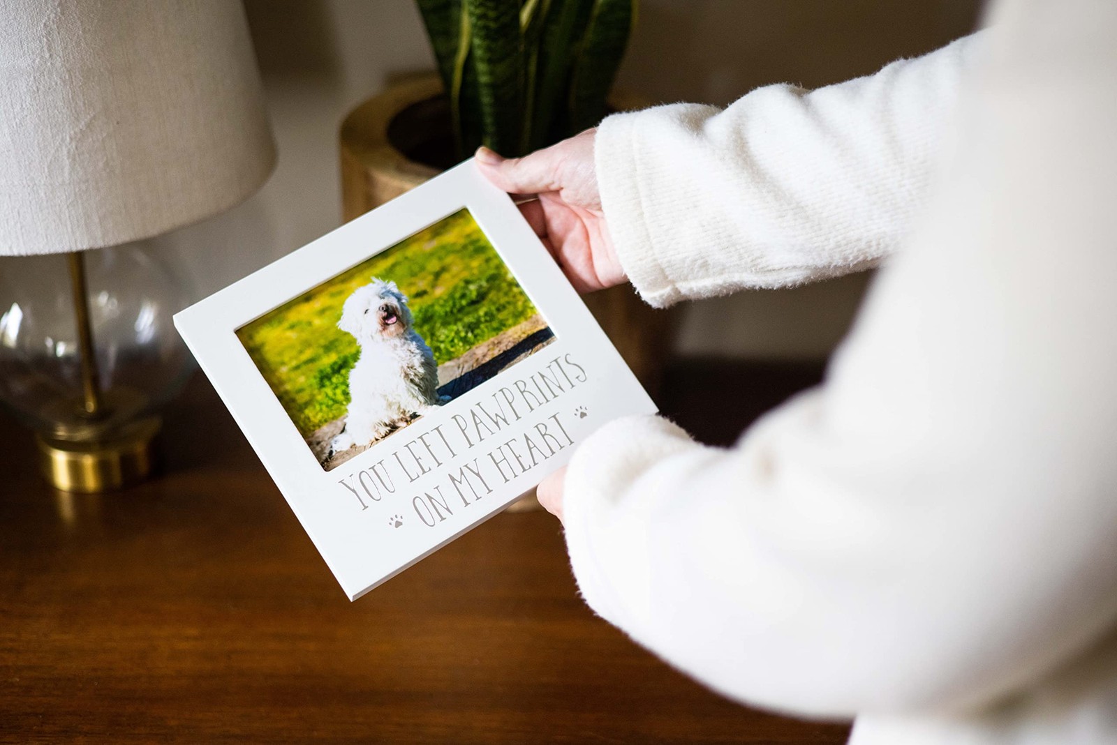 как выглядит White Wooden YOU LEFT PAWPRINTS ON MY HEART Pet Remembrance 4x6 Photo Frame Q... фото