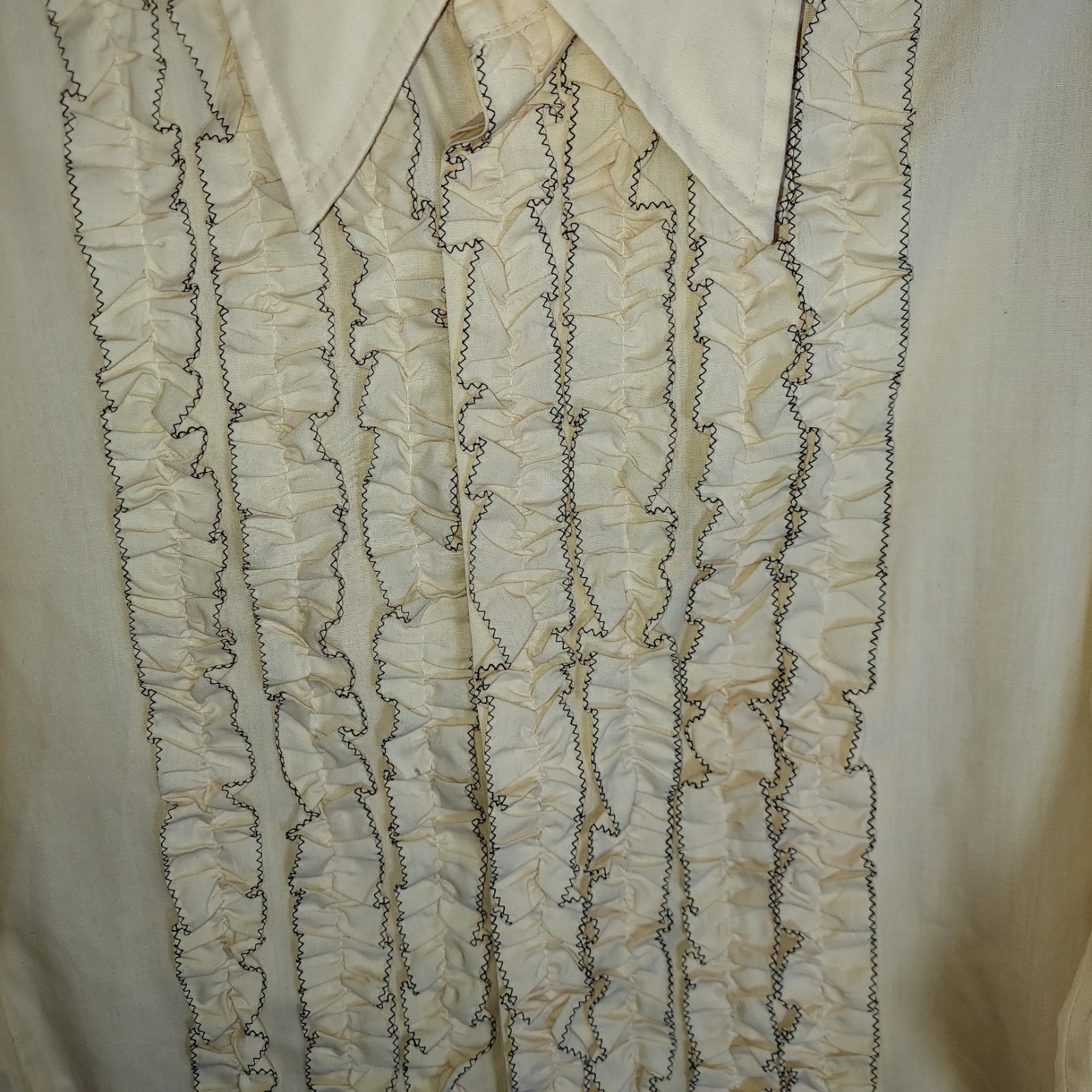 Vintage 70s Delton Ruffle Tuxedo Shirt French Cuff Size 14.5 35 Tan Disco Dacron