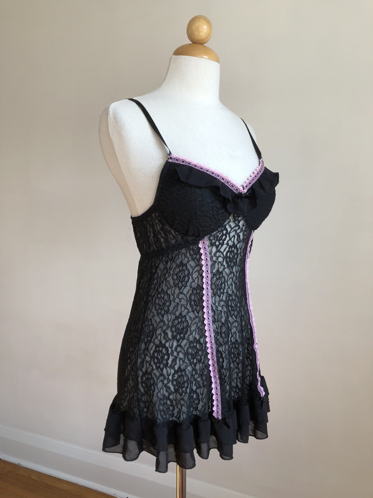 как выглядит BEAUTIFUL NWOT VTG CINEMA ETOILE Black Pink Lace Chemise Lingerie SZ M фото