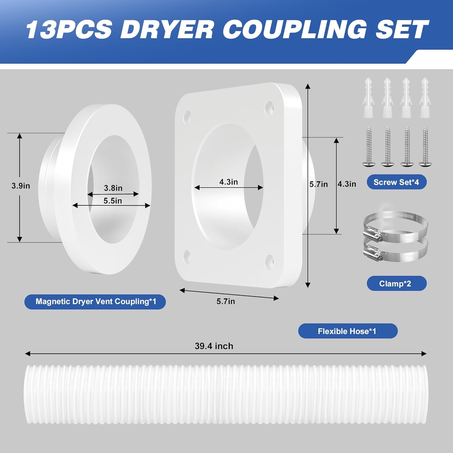 Magnetic Dryer Vent Connector. Airtight Seal Dryer Vent Coupling Kit with 4 3.3