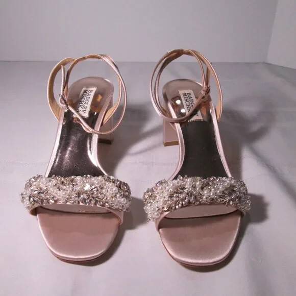 как выглядит Badgley Mischka Clara Embellished Strap Evening Shoe Sz 6.5 фото