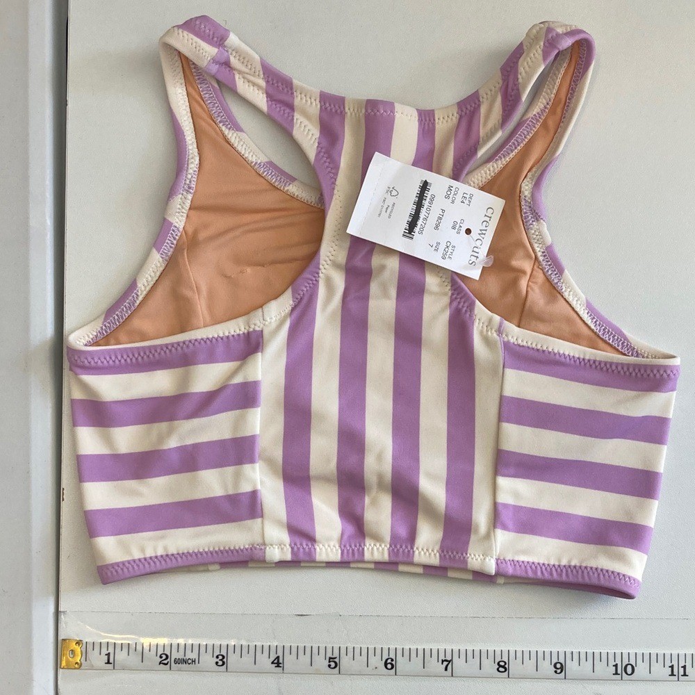J Crew Crewcuts Lavender and Cream Striped Bikini Top Size 7