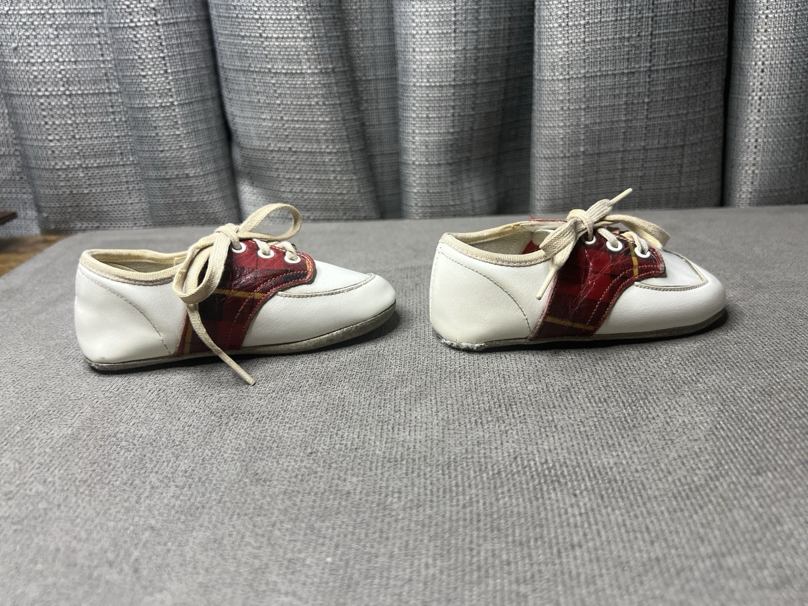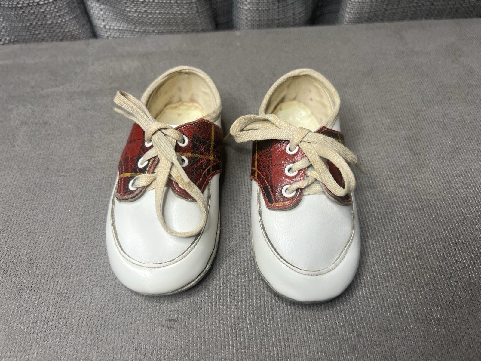 VTG White Leather Saddle Baby Trainers Walker Shoes Laces No Size