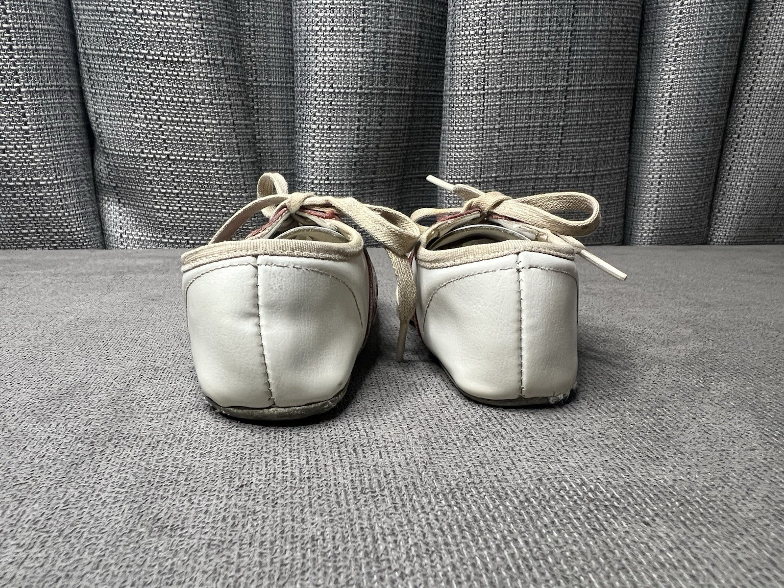 как выглядит VTG White Leather Saddle Baby Trainers Walker Shoes Laces No Size фото