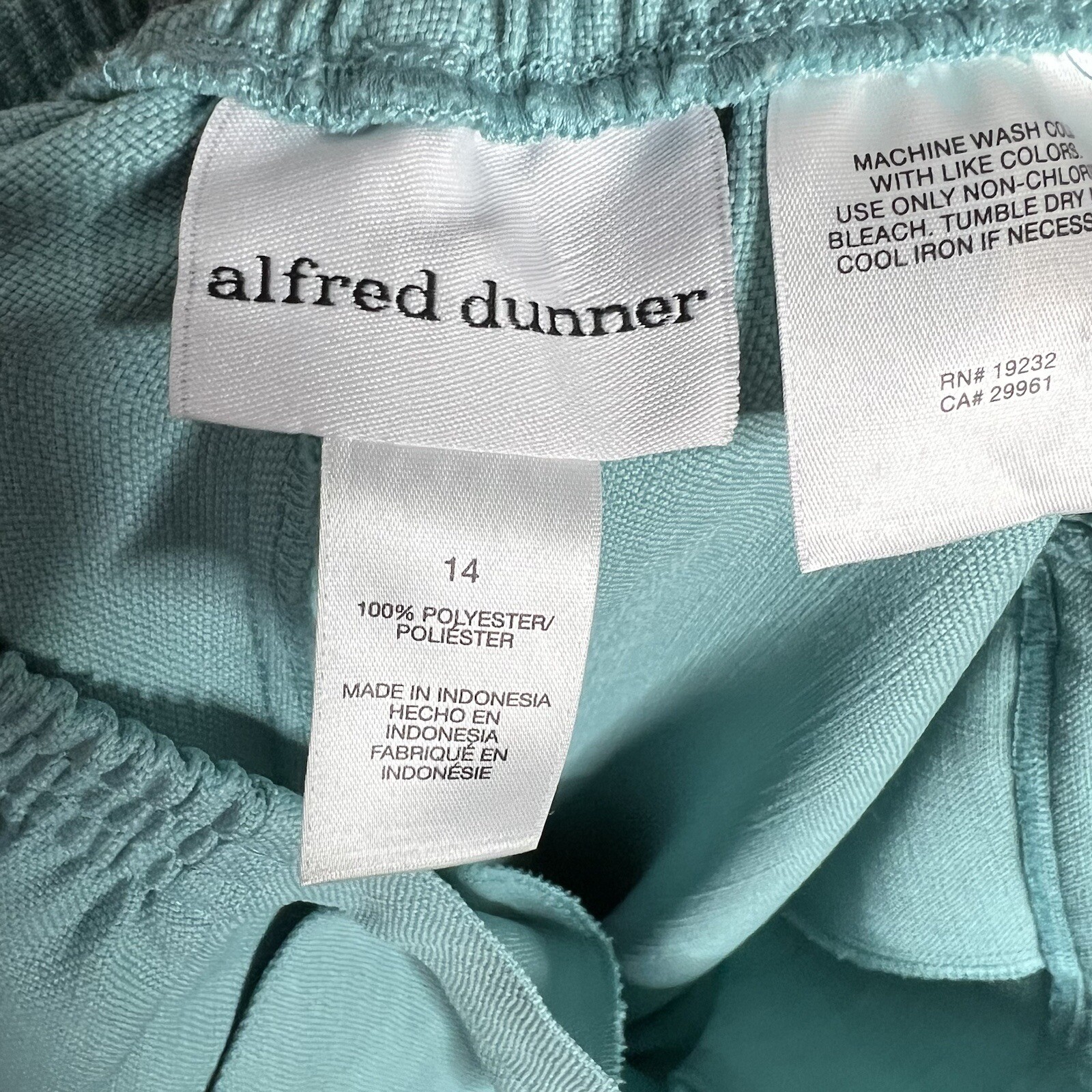 Womens Alfred Dunner Blue Green Polyester Pull-On Pants Size 14 32Wx28L