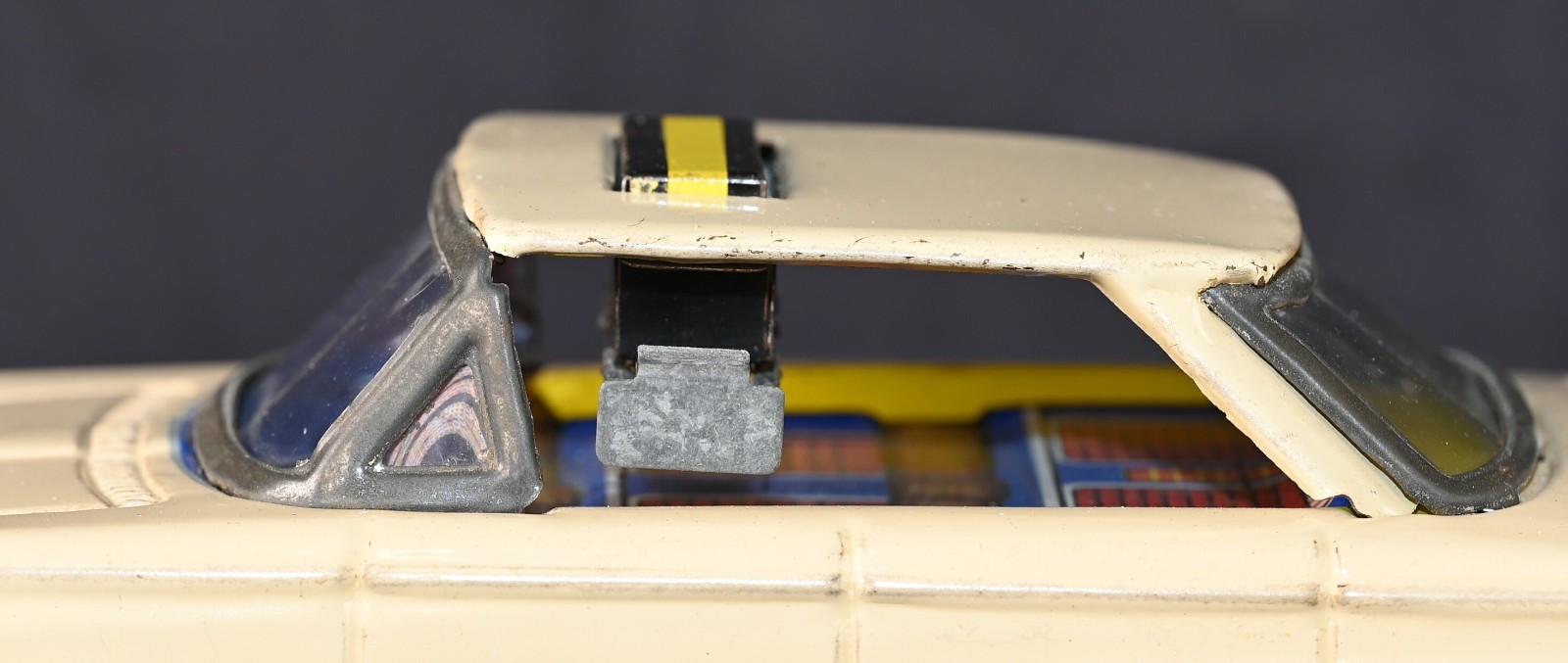 Vintage Tin 1962 Buick Taxi Friction Toy Car Korea Pop-up Sign