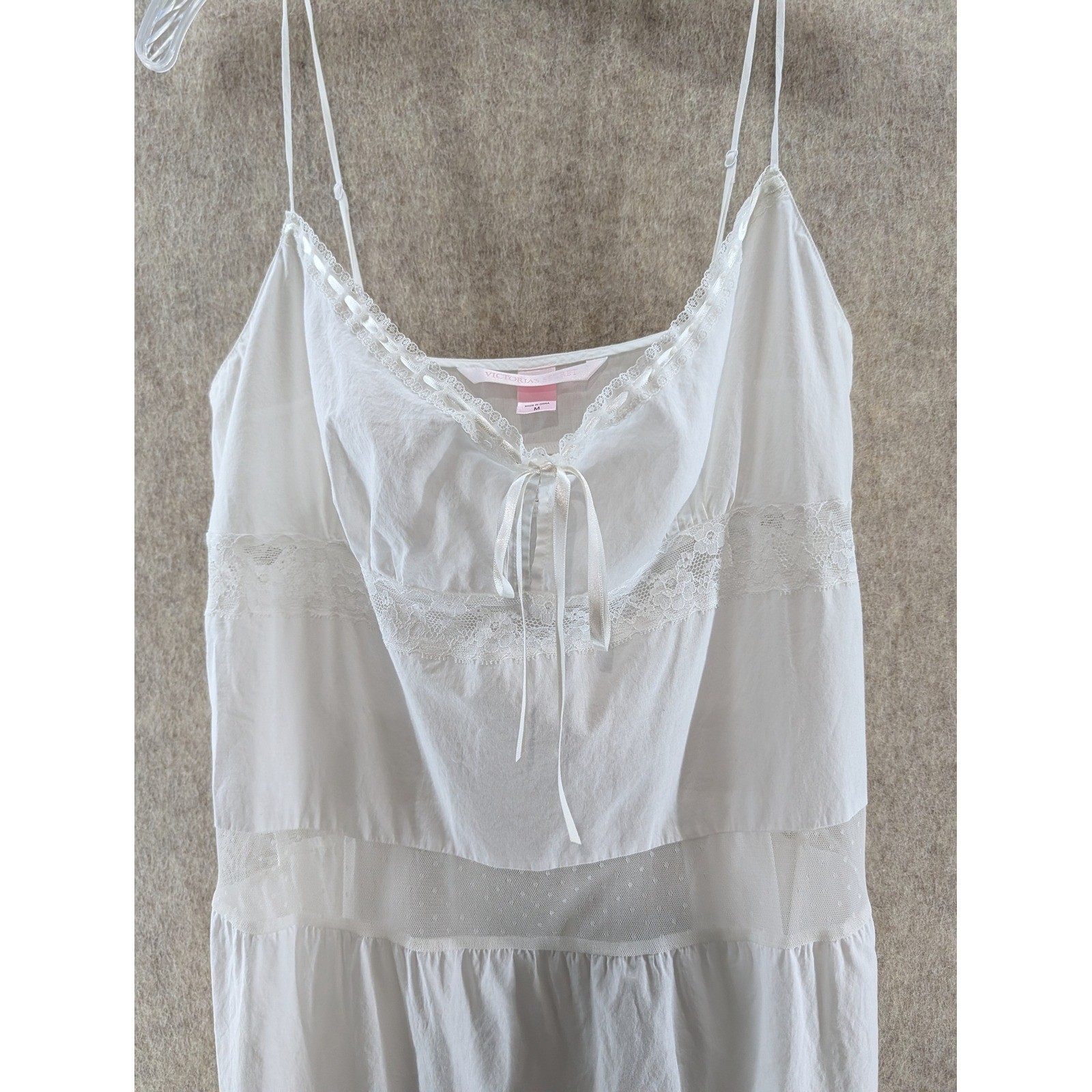 как выглядит Victorias Secret White Lace Trimmed Babydoll Slip Dress Size M фото