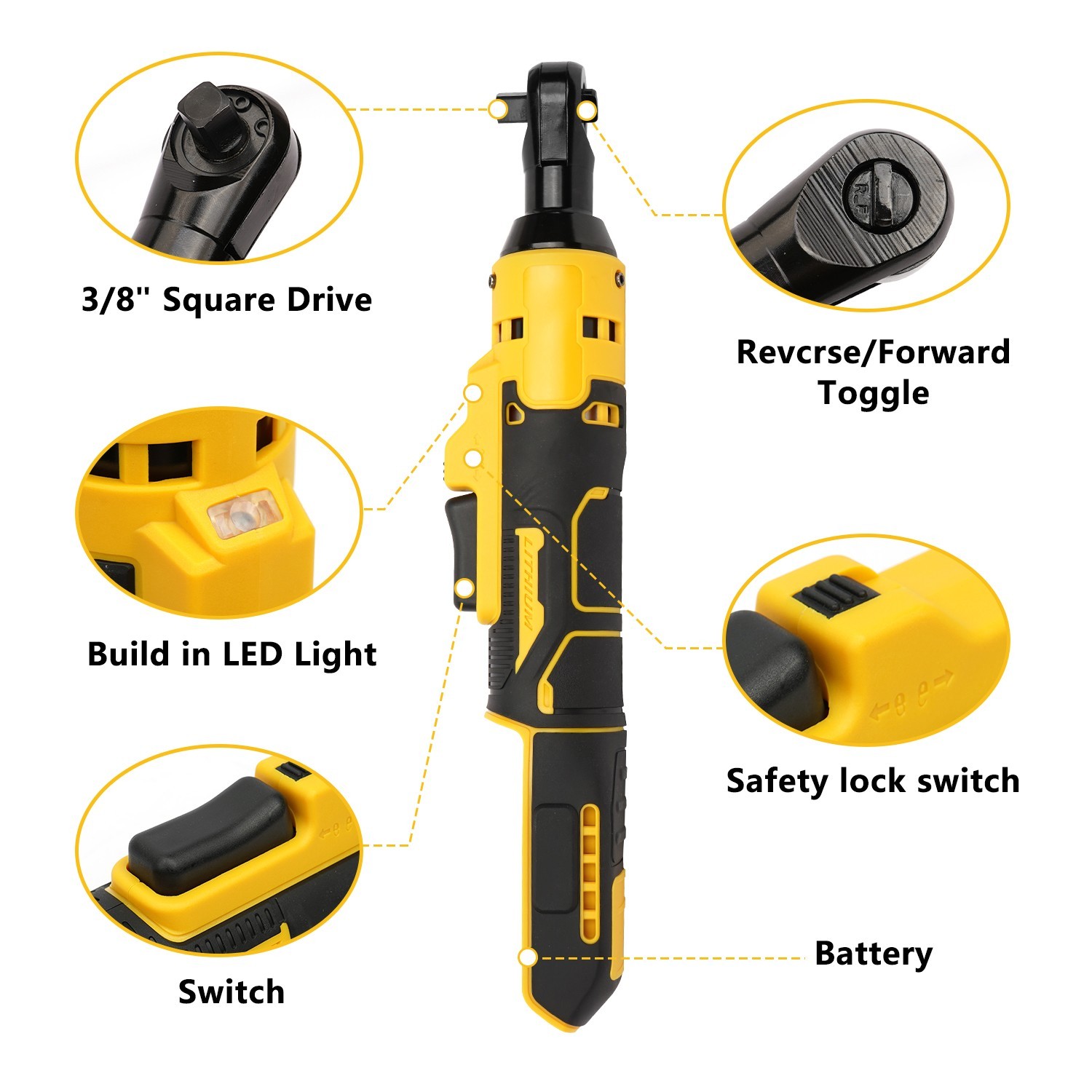 • Cordless Ratchet Wrench 3/8" Electric Ratchet Wrench Fit DEWALT 20V MAX Battery