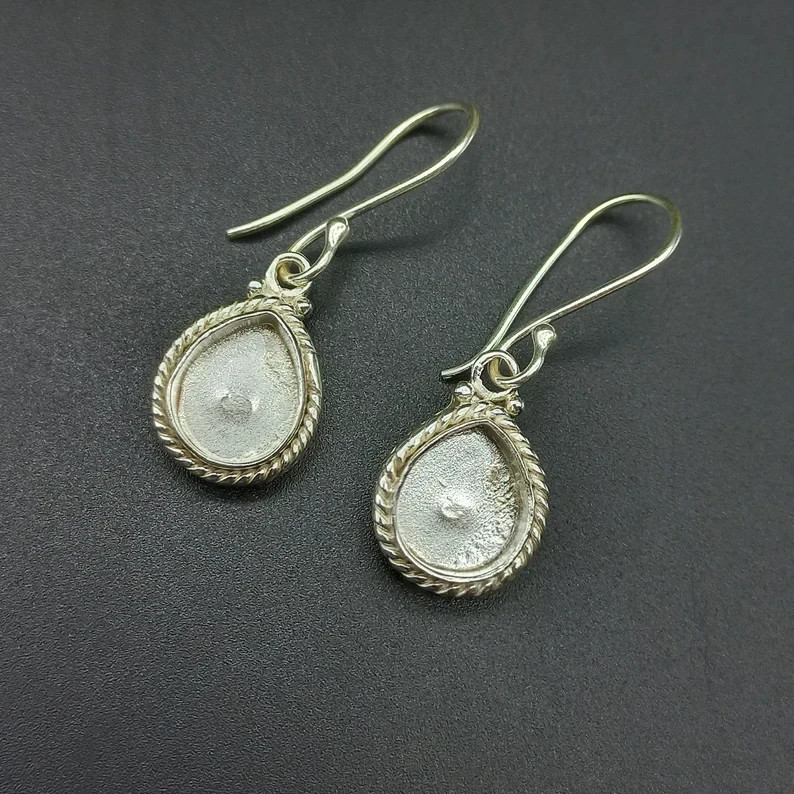 925 Sterling Silver 8x10mm Pear Dangle Earring Setting DIY Jewelry Making