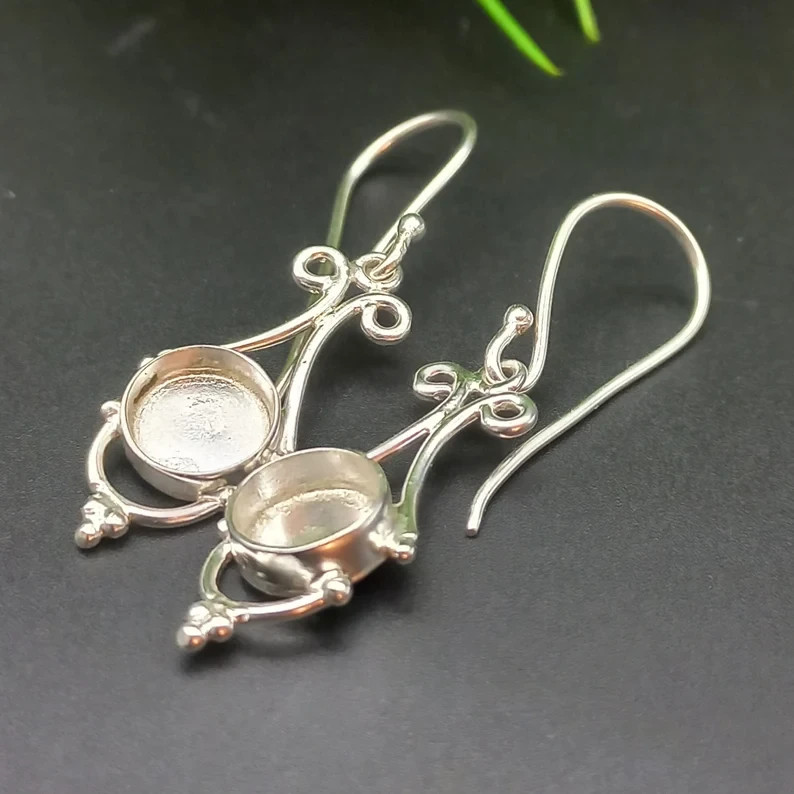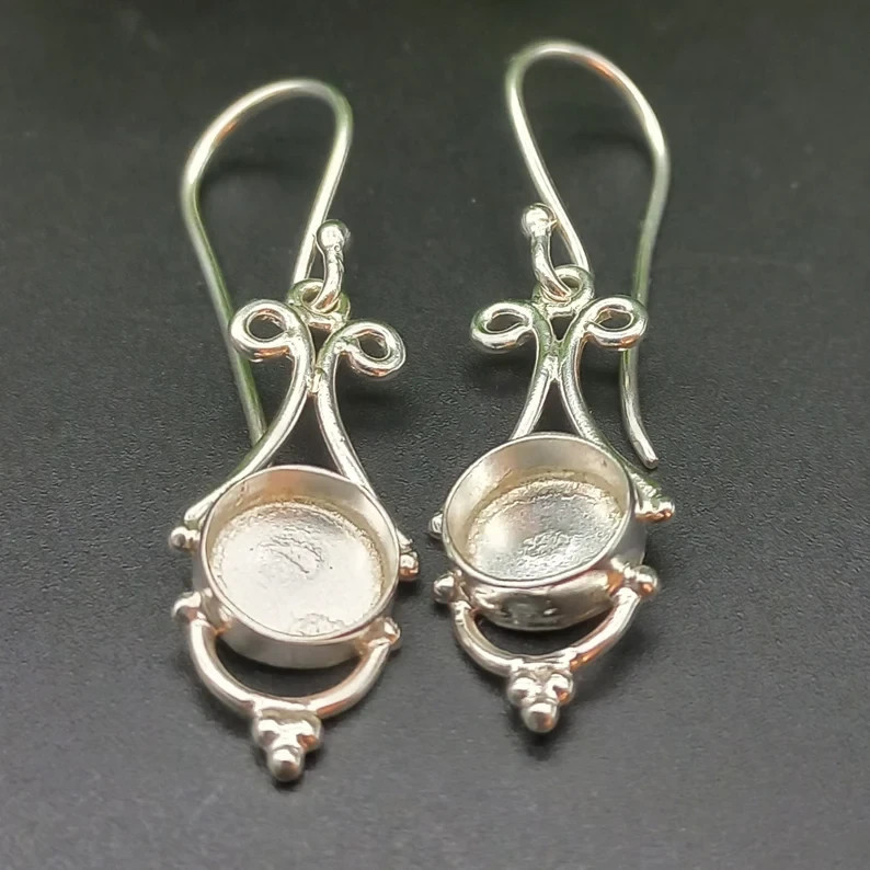 925 Sterling Silver 6mm Bezel Cup Earring Setting DIY Jewelry Supplies