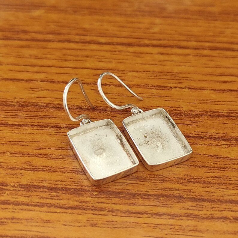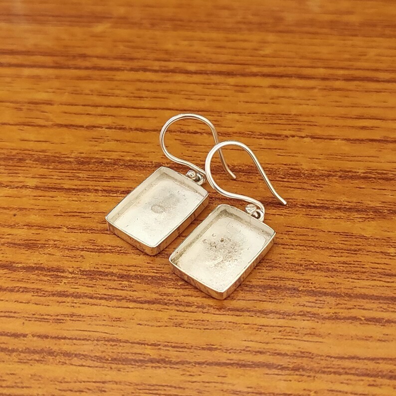 925 Sterling Silver 12x10mm Octagon Bezel Dangle Earring Setting DIY Jewelry