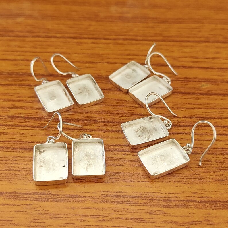 как выглядит 925 Sterling Silver 12x10mm Octagon Bezel Dangle Earring Setting DIY Jewelry фото