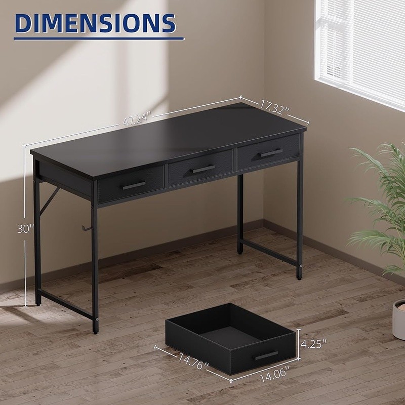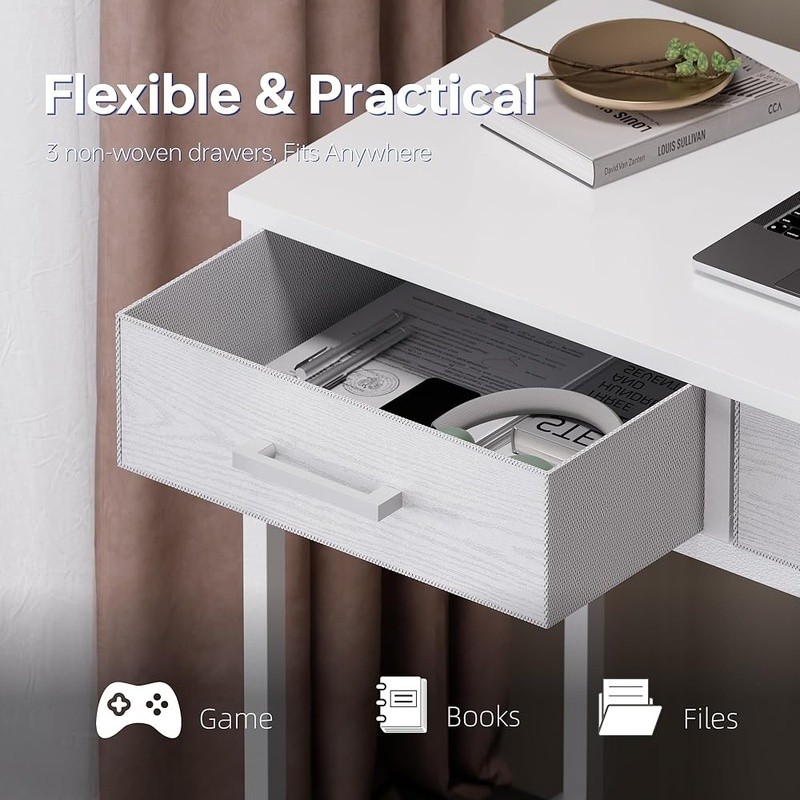 Compact Computer Desk W/ 3 Fabric Drawers Home Office Space Saving Study New
