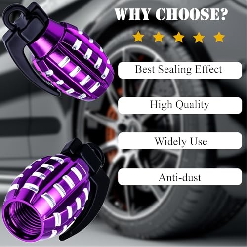 4 PCS Tire Valve Stem Caps, Aluminium Alloy Tire Valve Stem Covers 4 pcs Purple