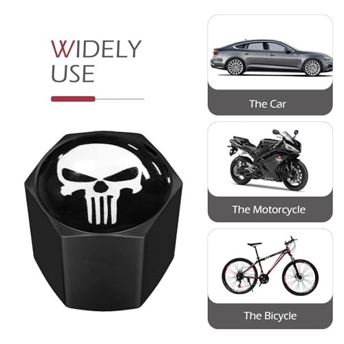 Tire Valve Stem Caps, Cool Skull Tire Air Valve Covers, Stainless 4 PCS White