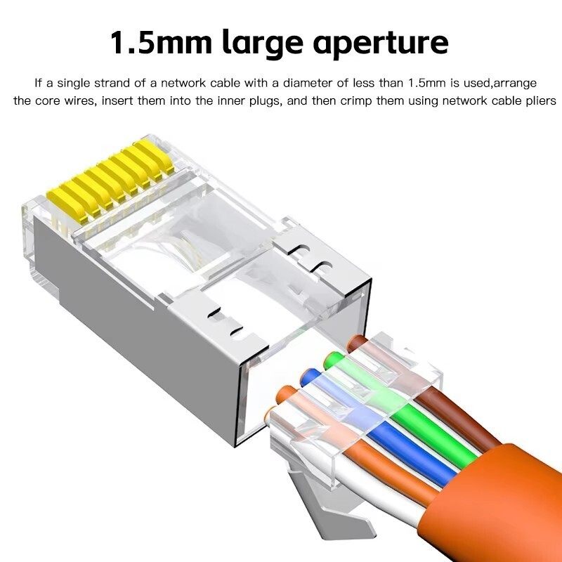 как выглядит 50PCS Cat6A Cat7 Pass Through Shielded RJ45 connector 8P8C Gold Plated Data Plug фото