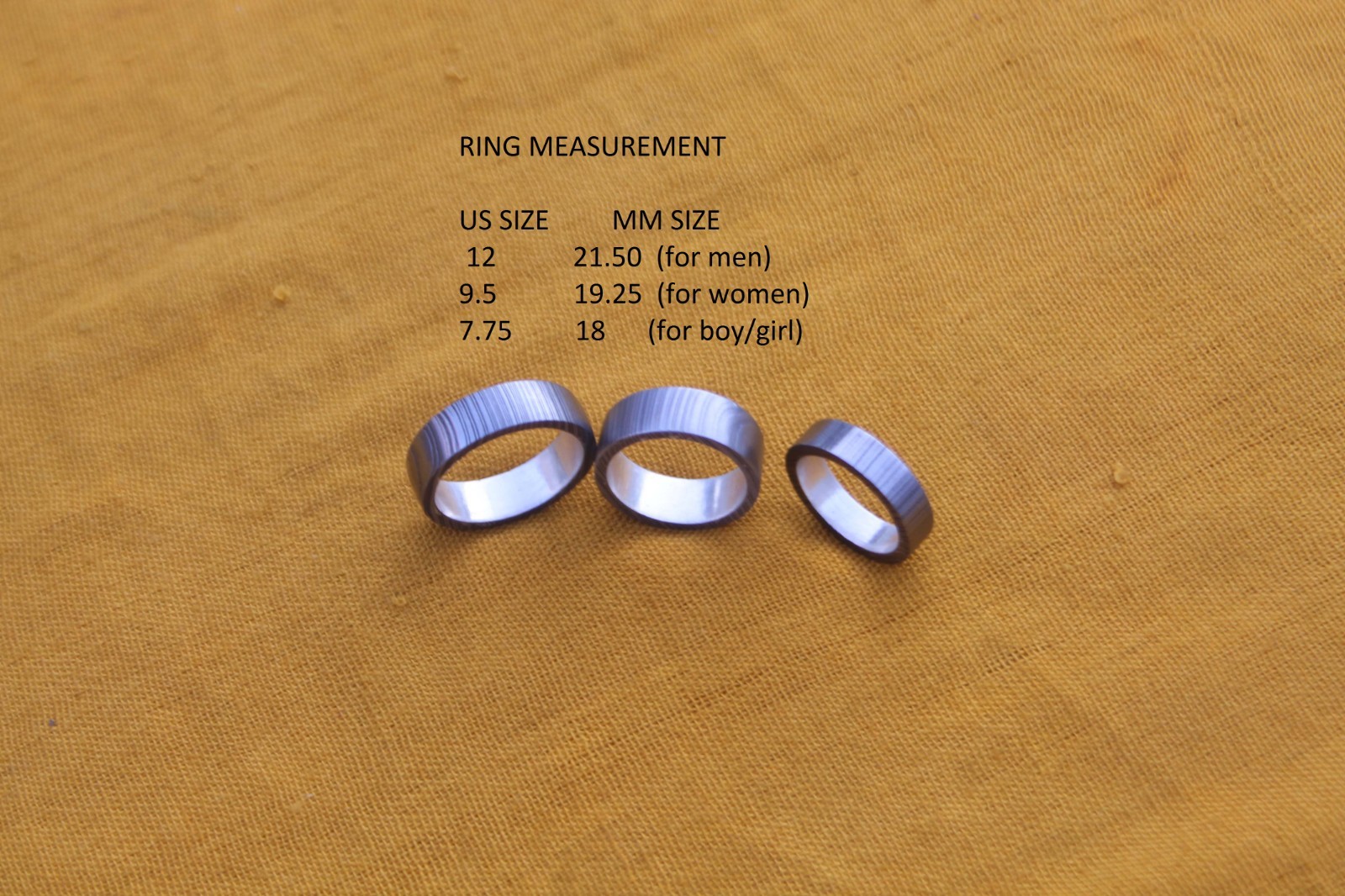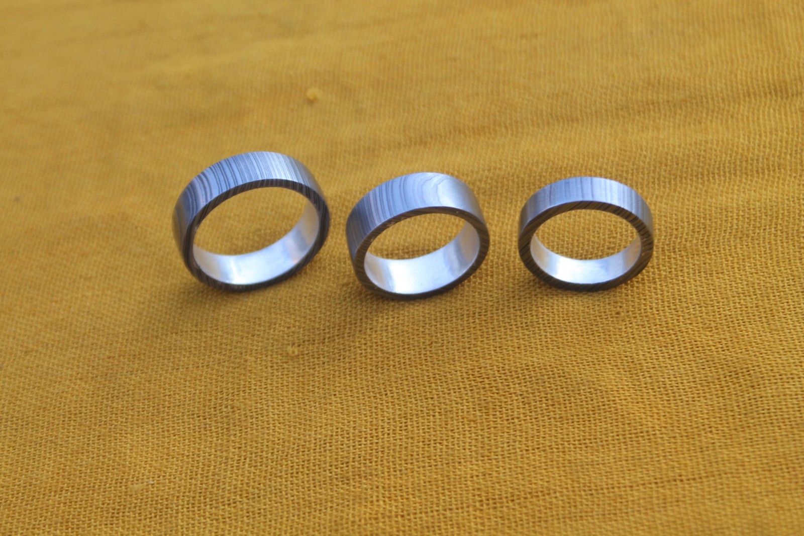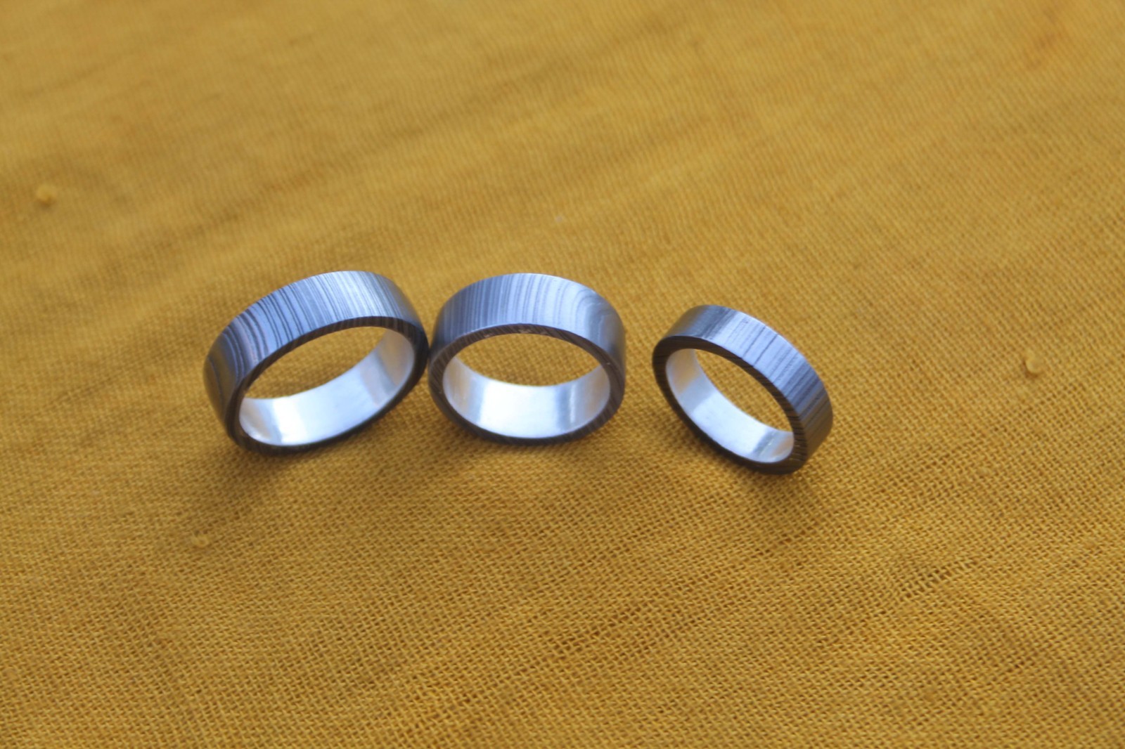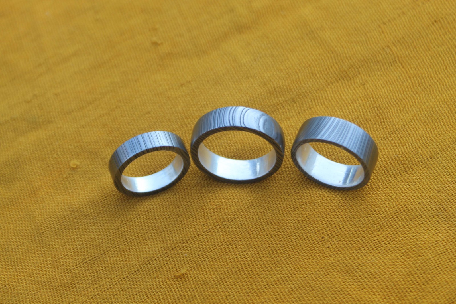 3 damascus steel finger ring silver liner inside valentine gift 12,9,7 US size