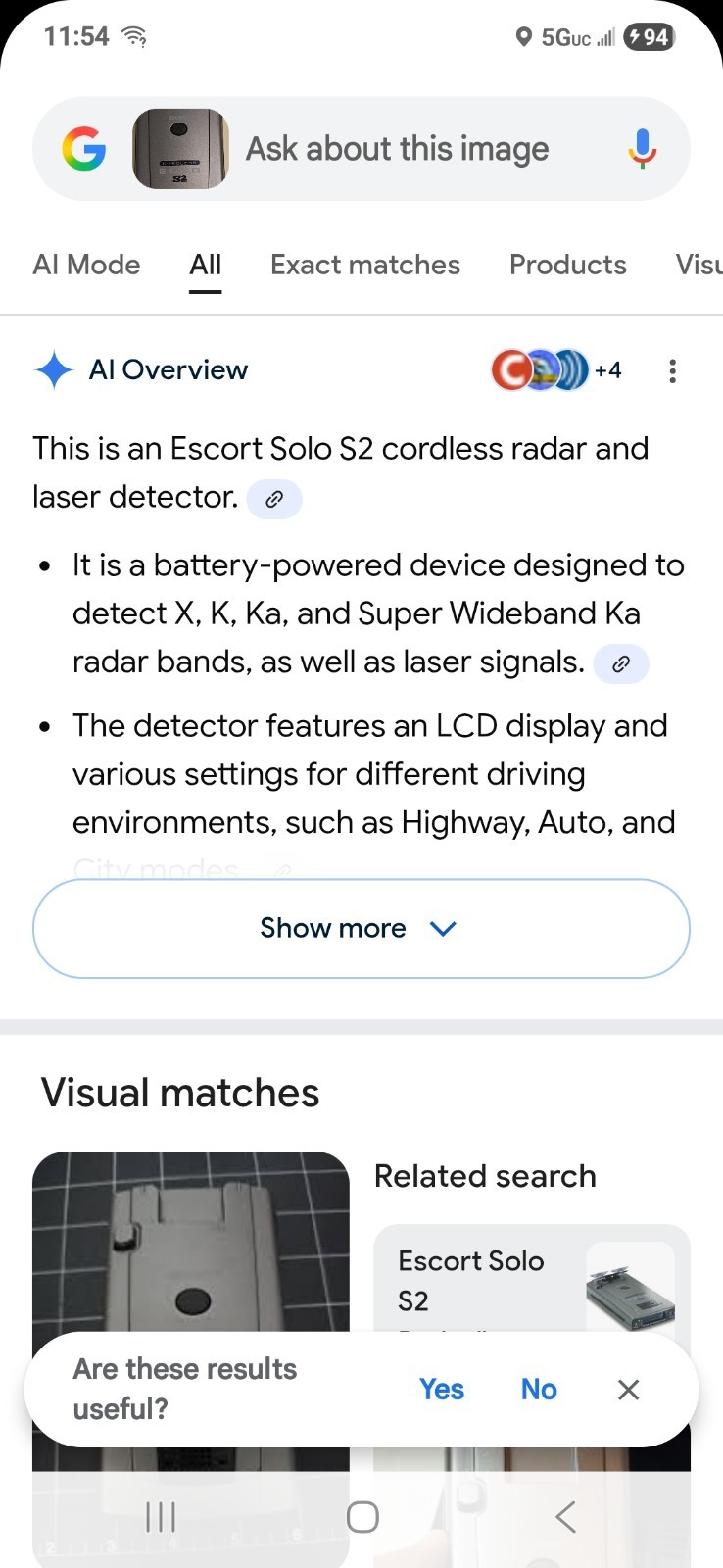 как выглядит Escort Cordless Solo S2 Radar Audio Detector City Auto Hgwy Unit Batteries Only фото