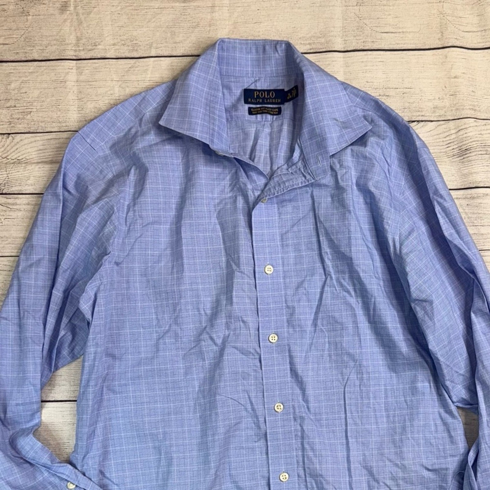 как выглядит POLO Ralph Lauren Mens Classic Fit Easy Care Dress Shirt Blue Size 16 32/33 фото