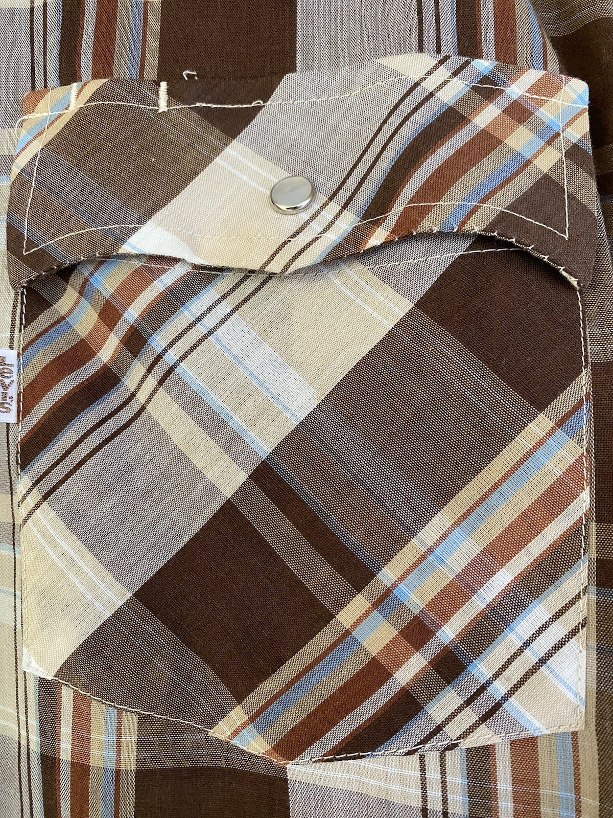vintage 80s LEVIS BROWN PLAID WESTERN DOUBLE PEARL SNAP POCKET COWBOY SHIRT L