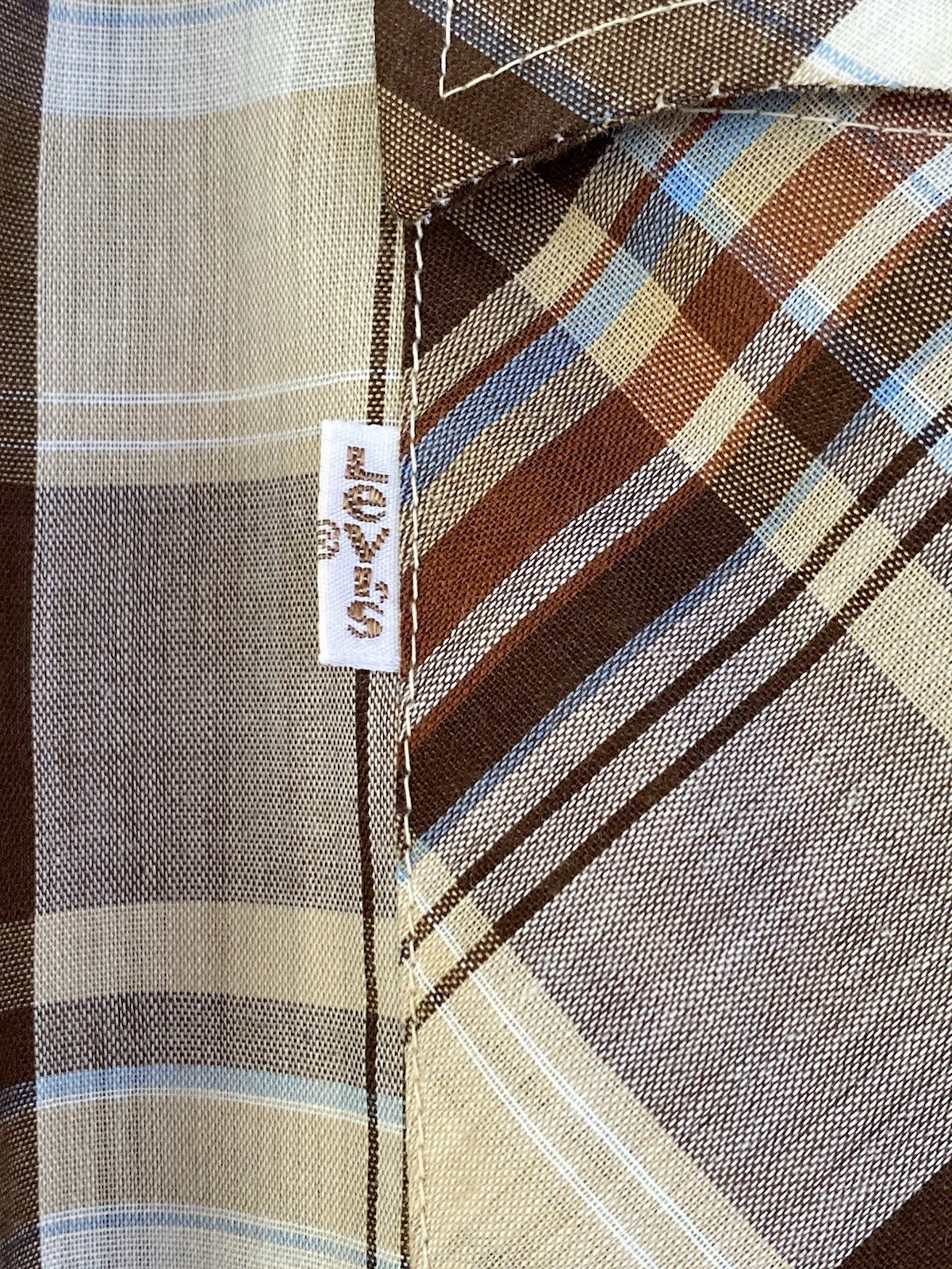 как выглядит vintage 80s LEVIS BROWN PLAID WESTERN DOUBLE PEARL SNAP POCKET COWBOY SHIRT L фото