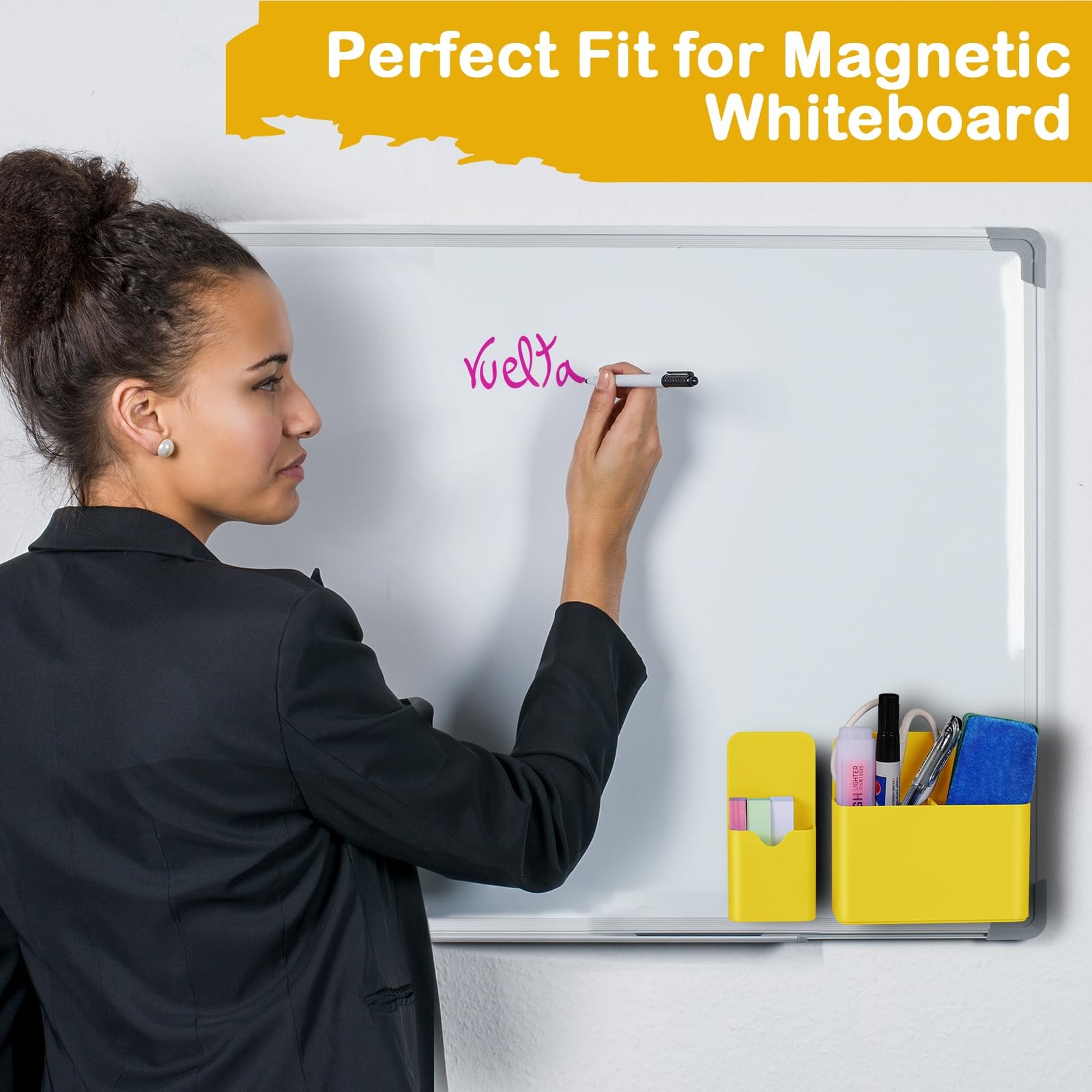 Magnetic Pen Holder,2 Pack Dry Erase Marker Holder with Yellow