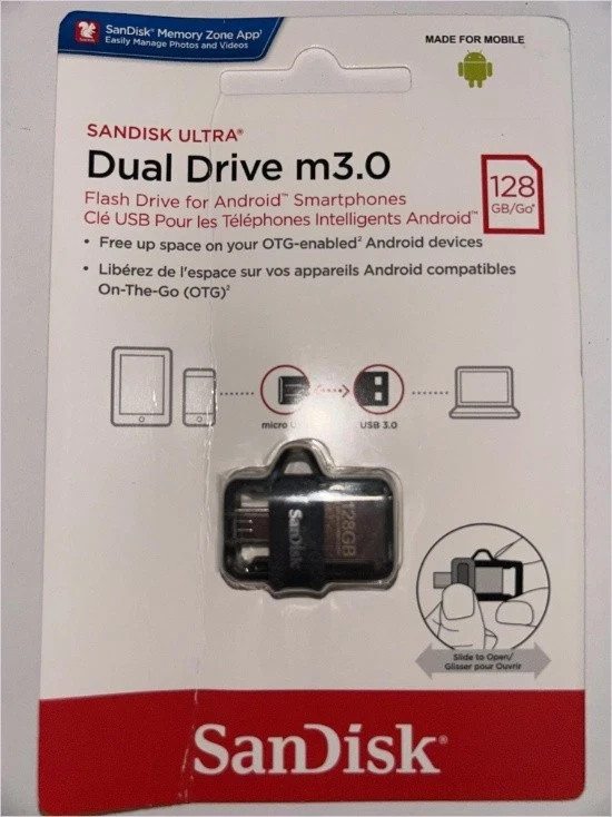 SanDisk 128GB Ultra Dual Drive m3.0 for Android Devices and Computers - microUSB