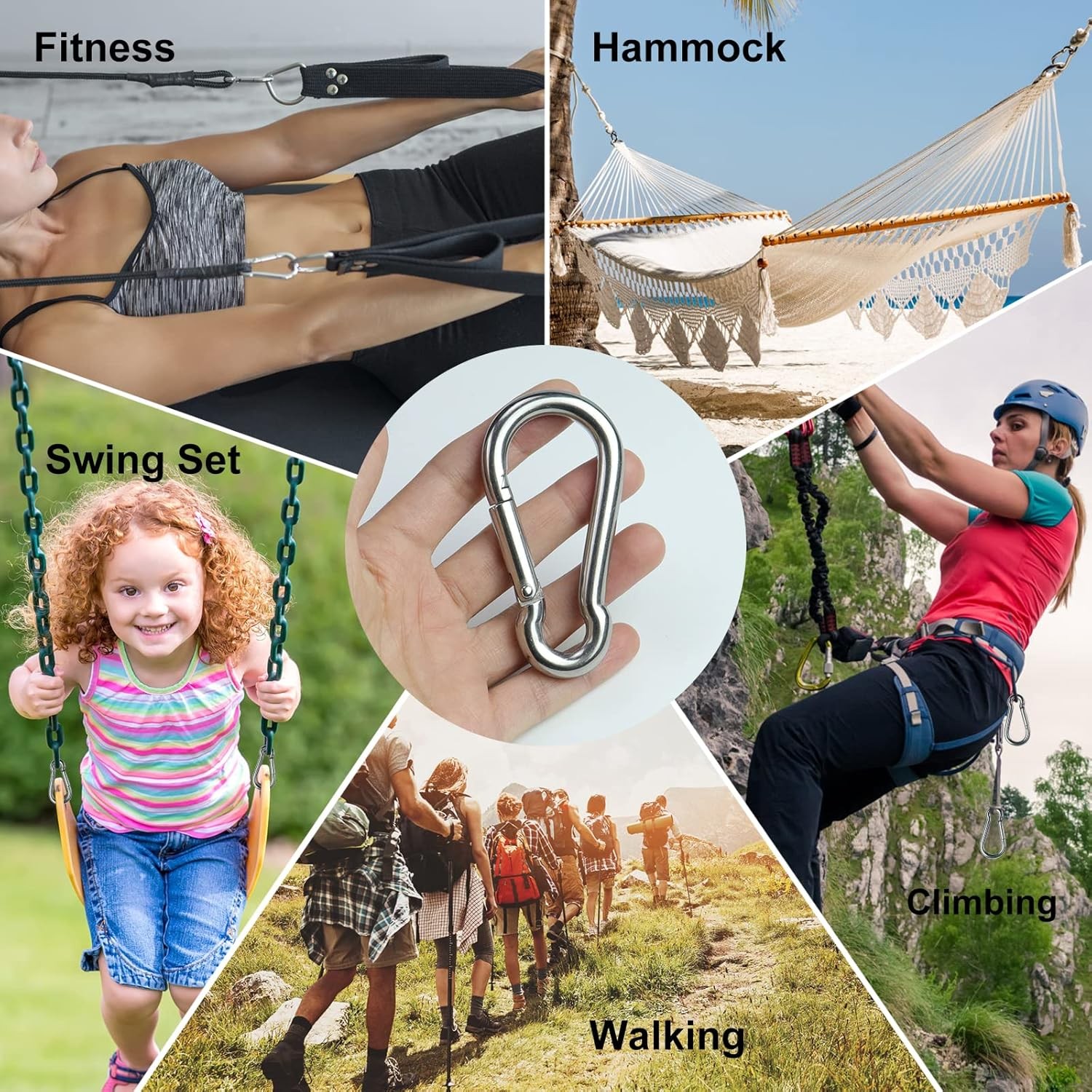 как выглядит M4 Stainless Steel Carabiner Clip, Heavy Duty 1.57" Spring Snap Hook фото