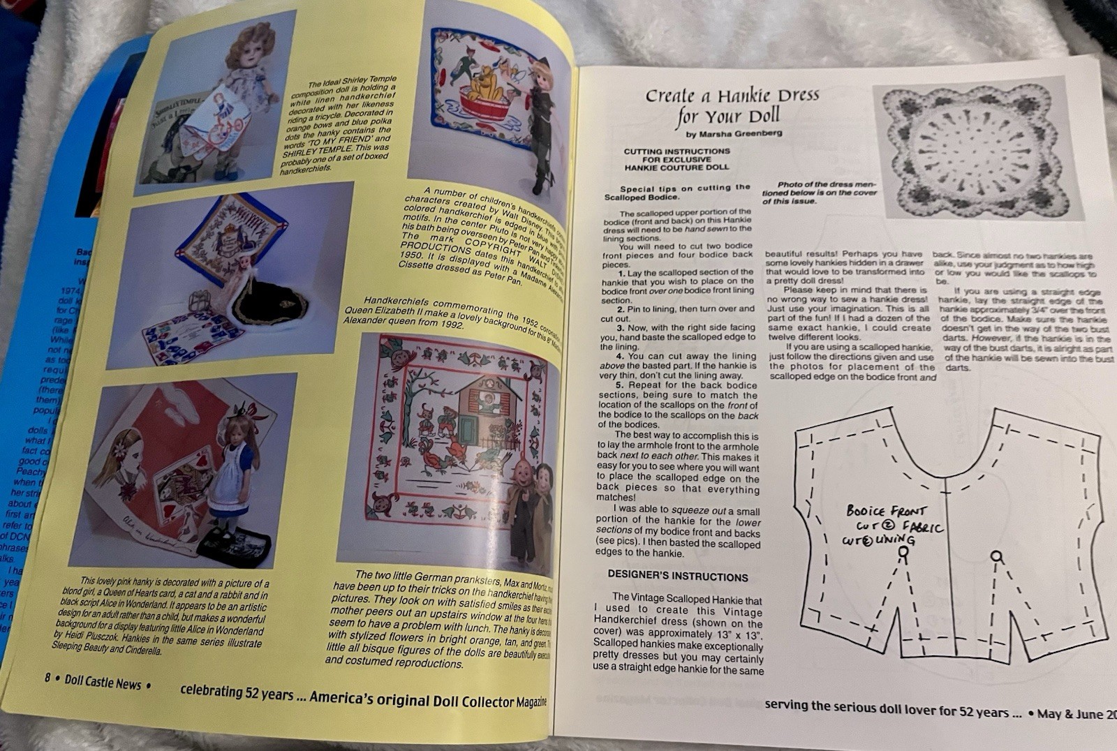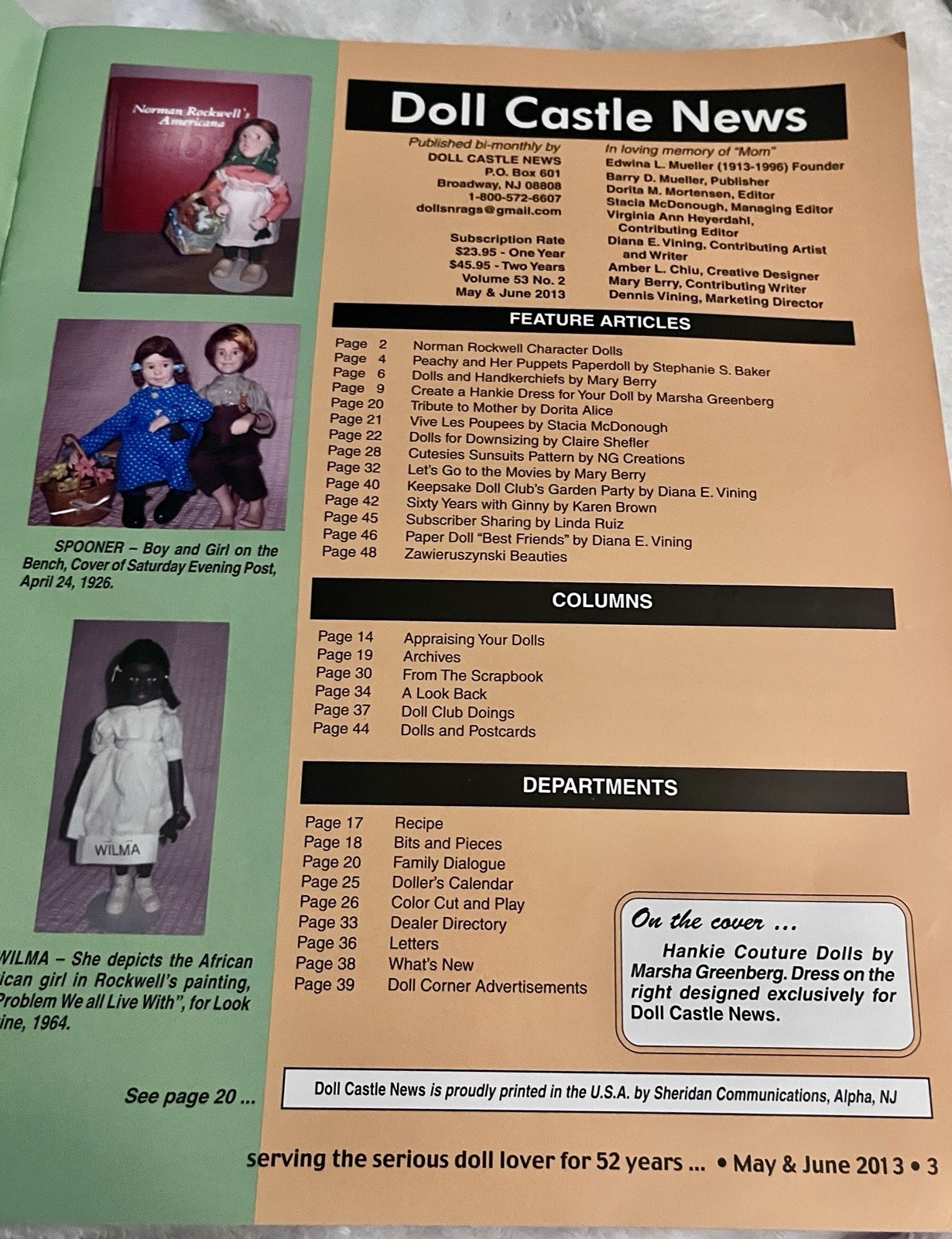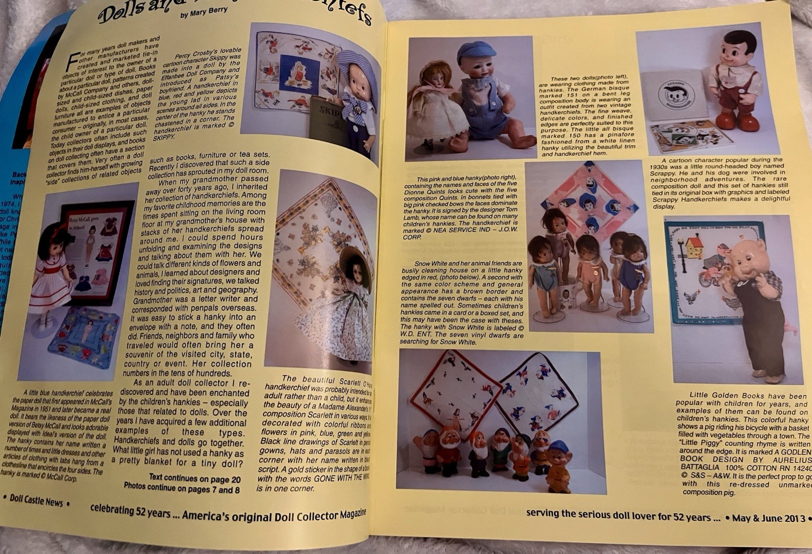 Doll Castle News May/June 2013 Norman Rockwell Dolls and Hankies w/ Pattern