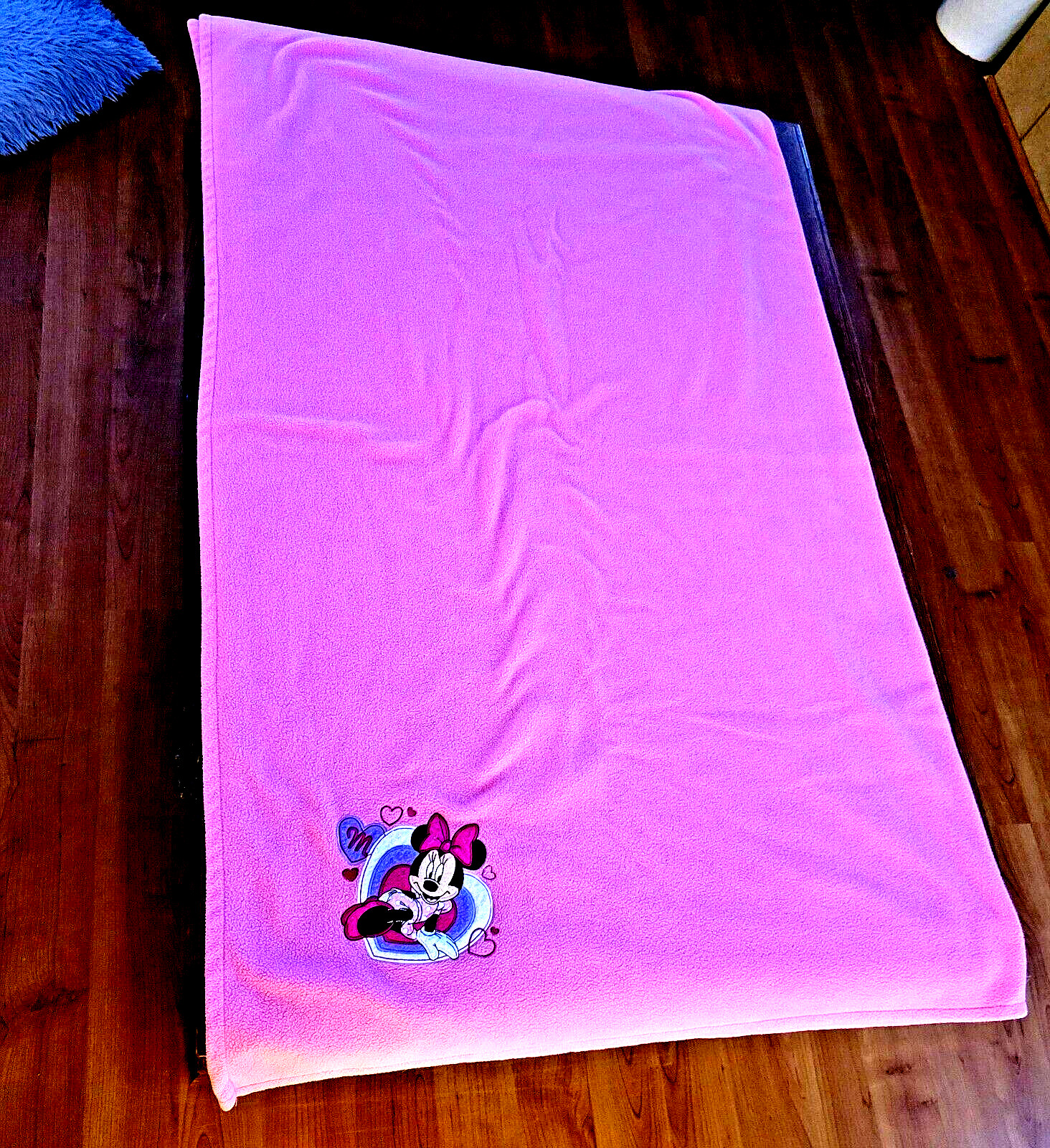 как выглядит Disney Store Minnie Mouse Fleece Blanket Pink Hearts Cozy Nursery 50 x 64 retro фото