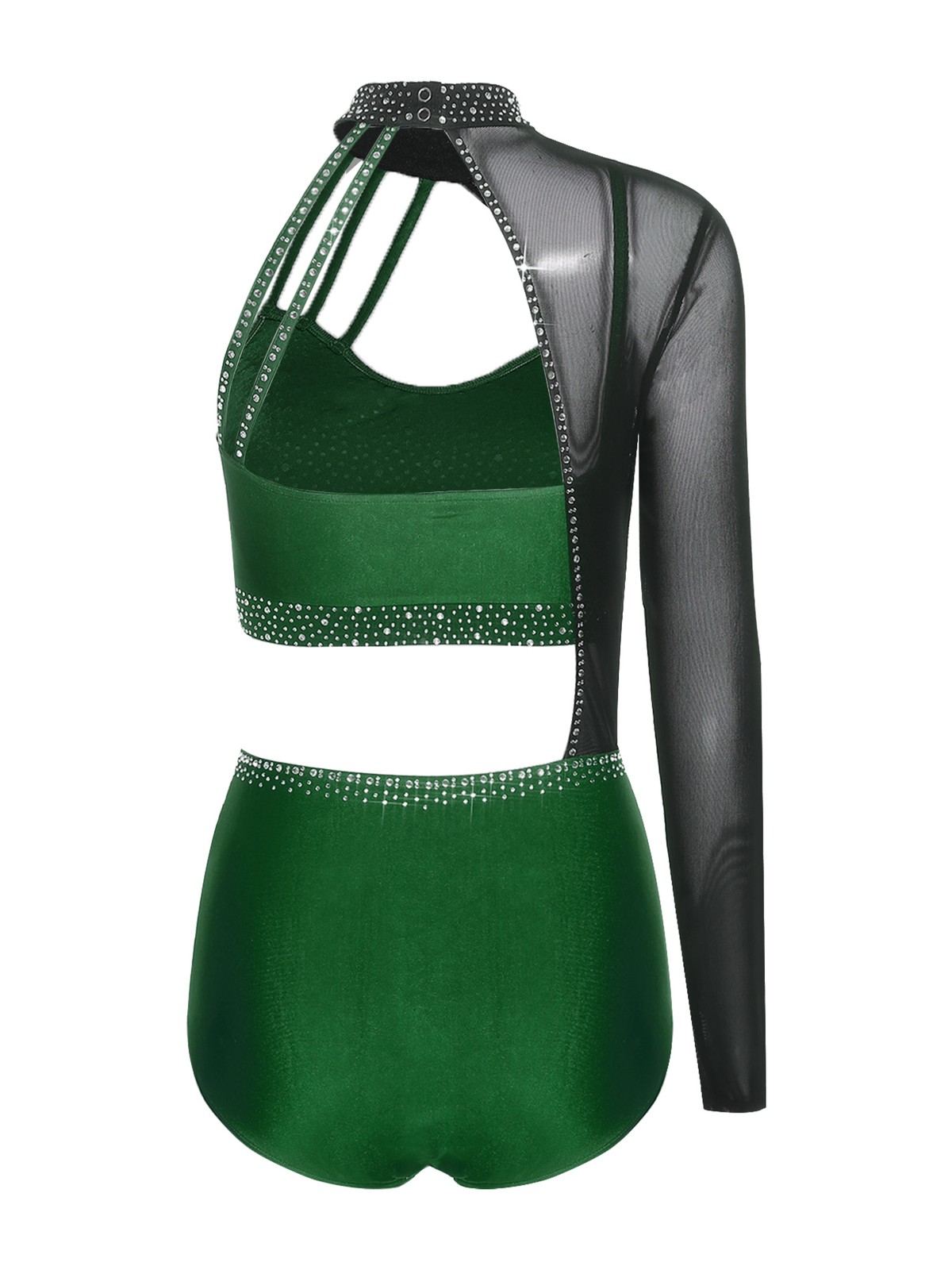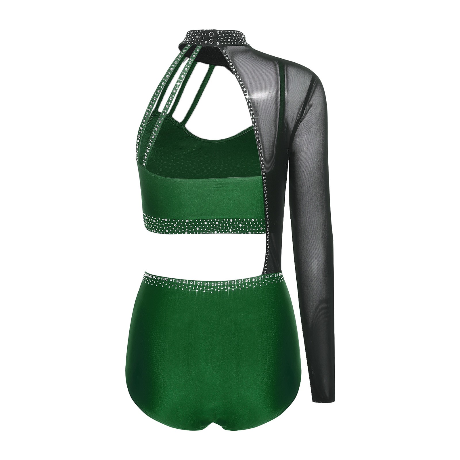 Womens Jumpsuit Competition Bodysuit Dancing Leotard Sheer Costumes Ballet Mesh