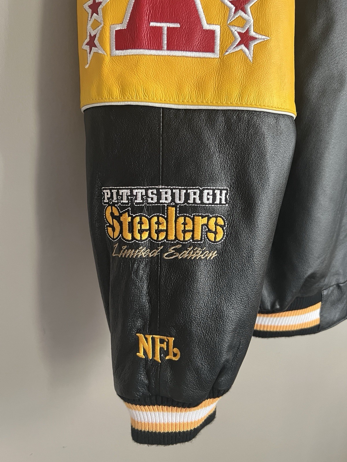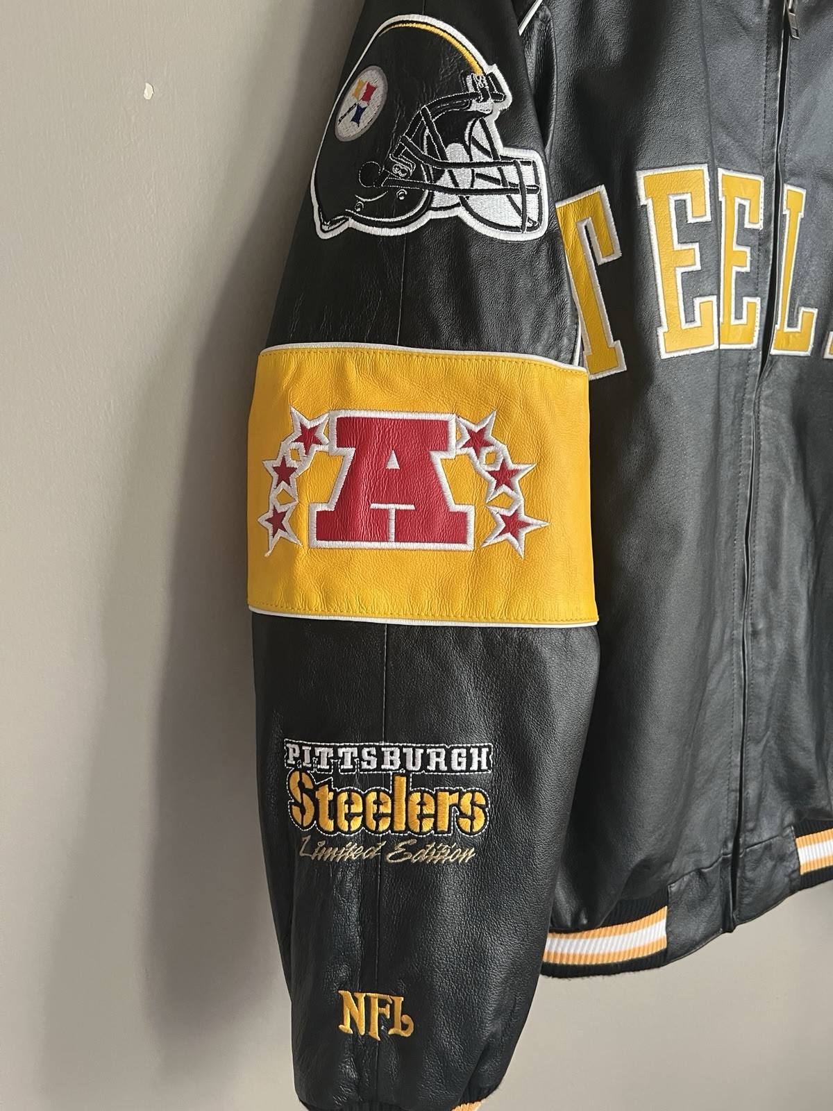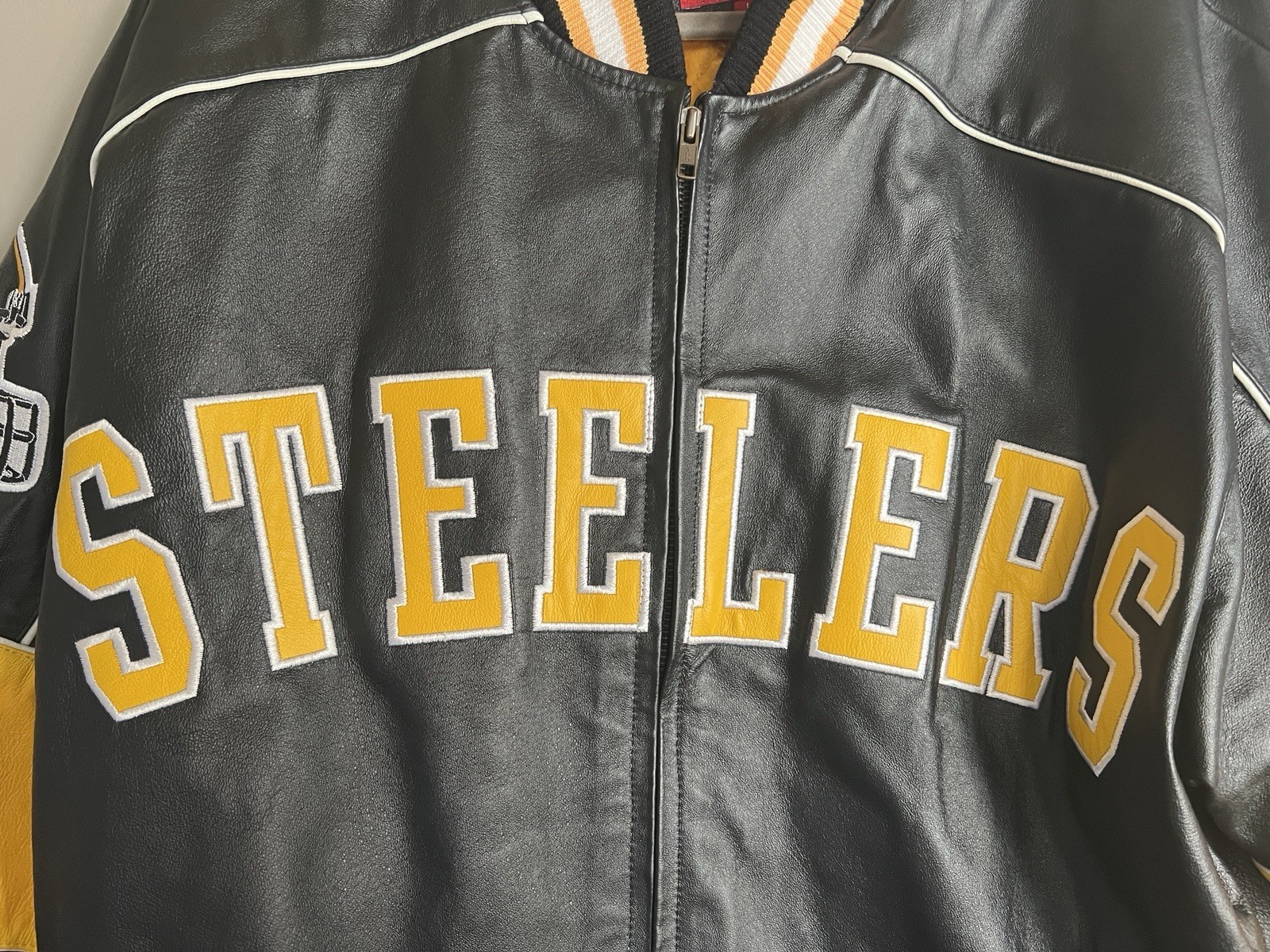 как выглядит PITTSBURGH STEELERS G-III 5 Time Super Bowl Champs Leather Jacket Men s L VG фото