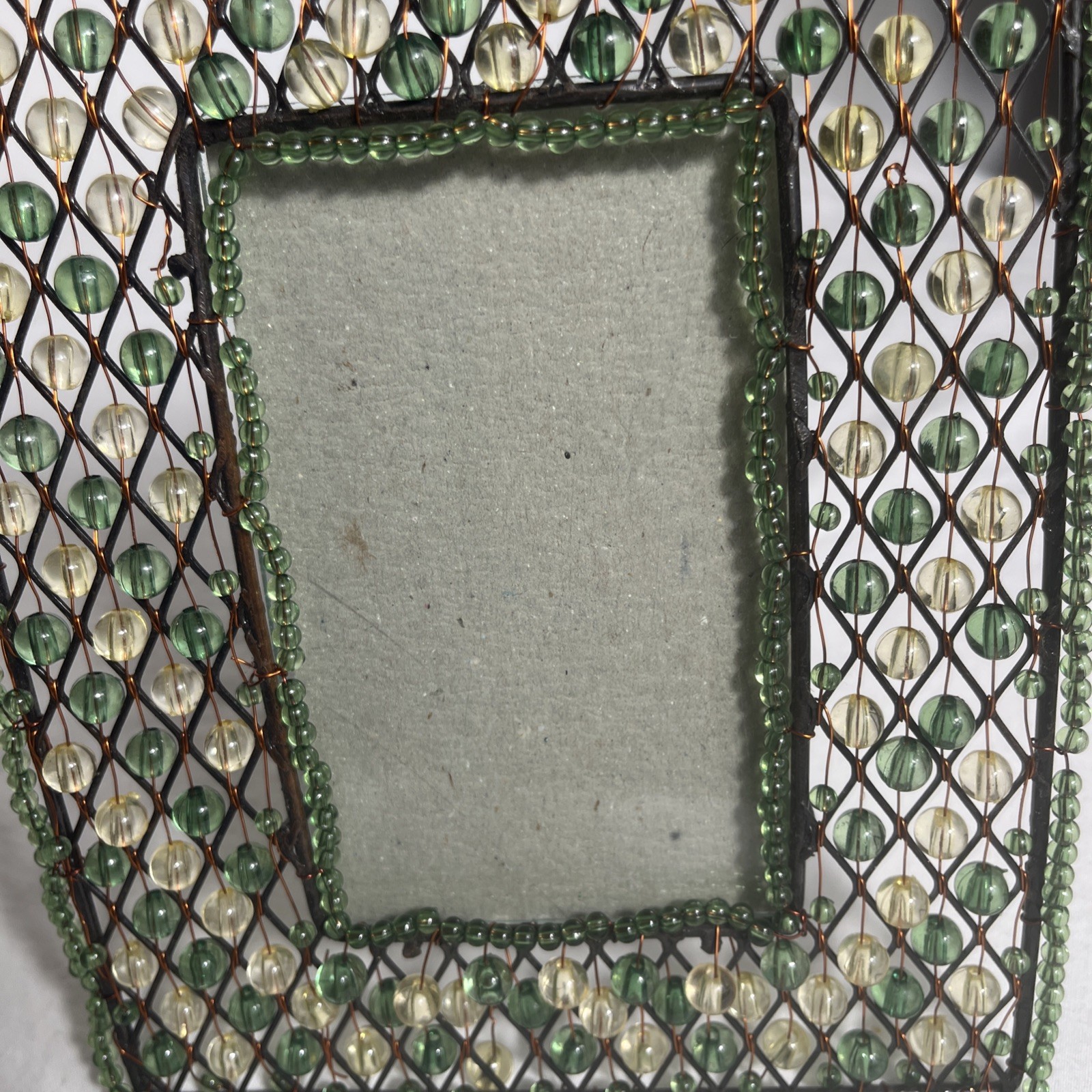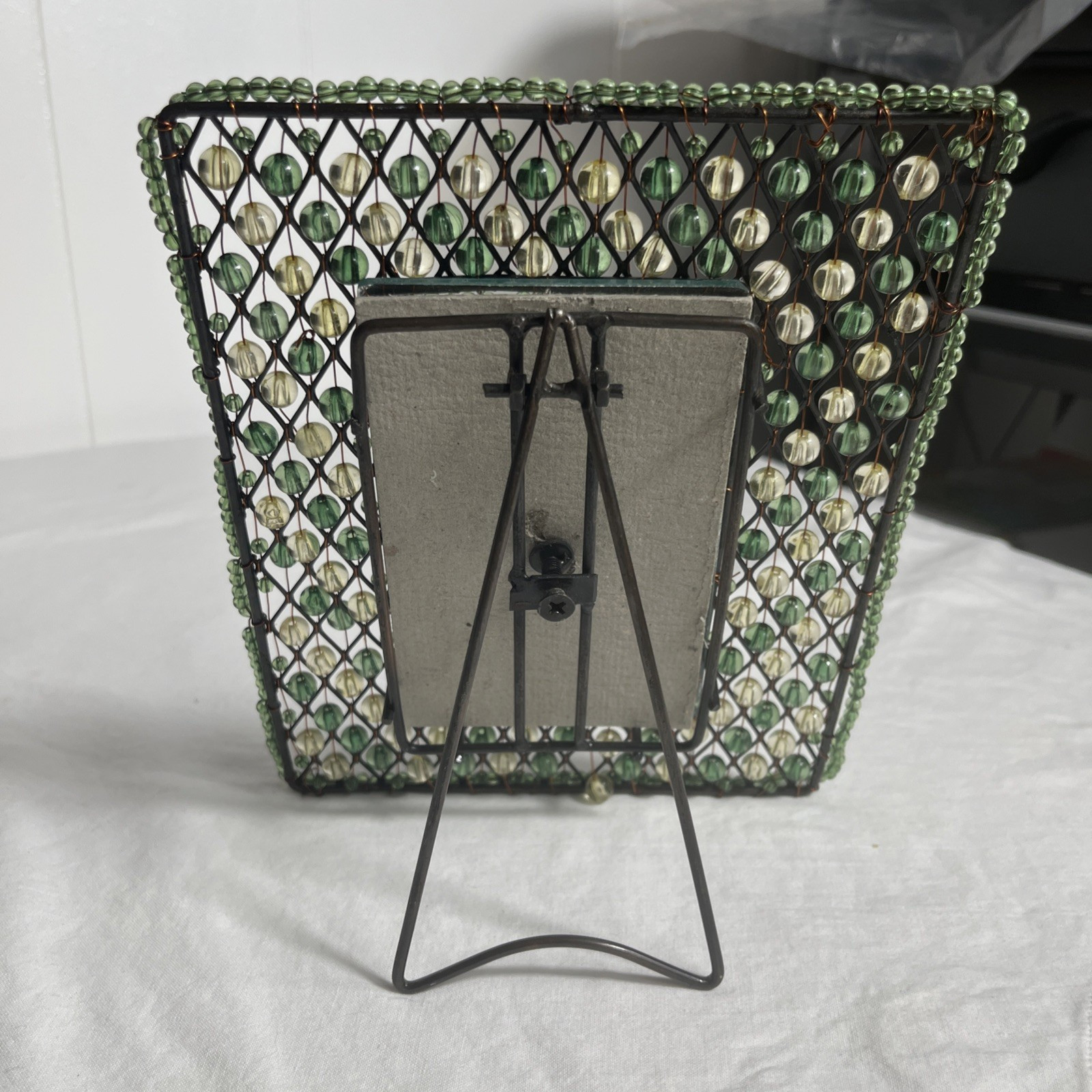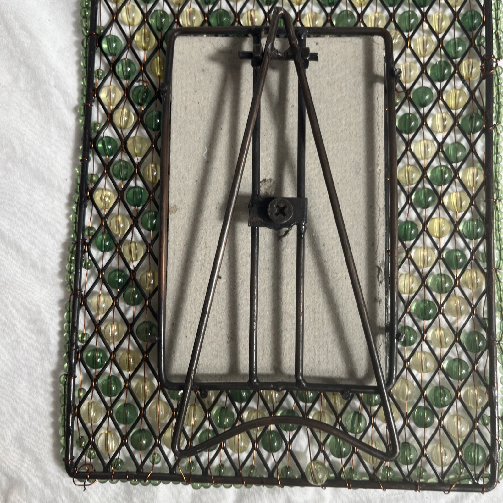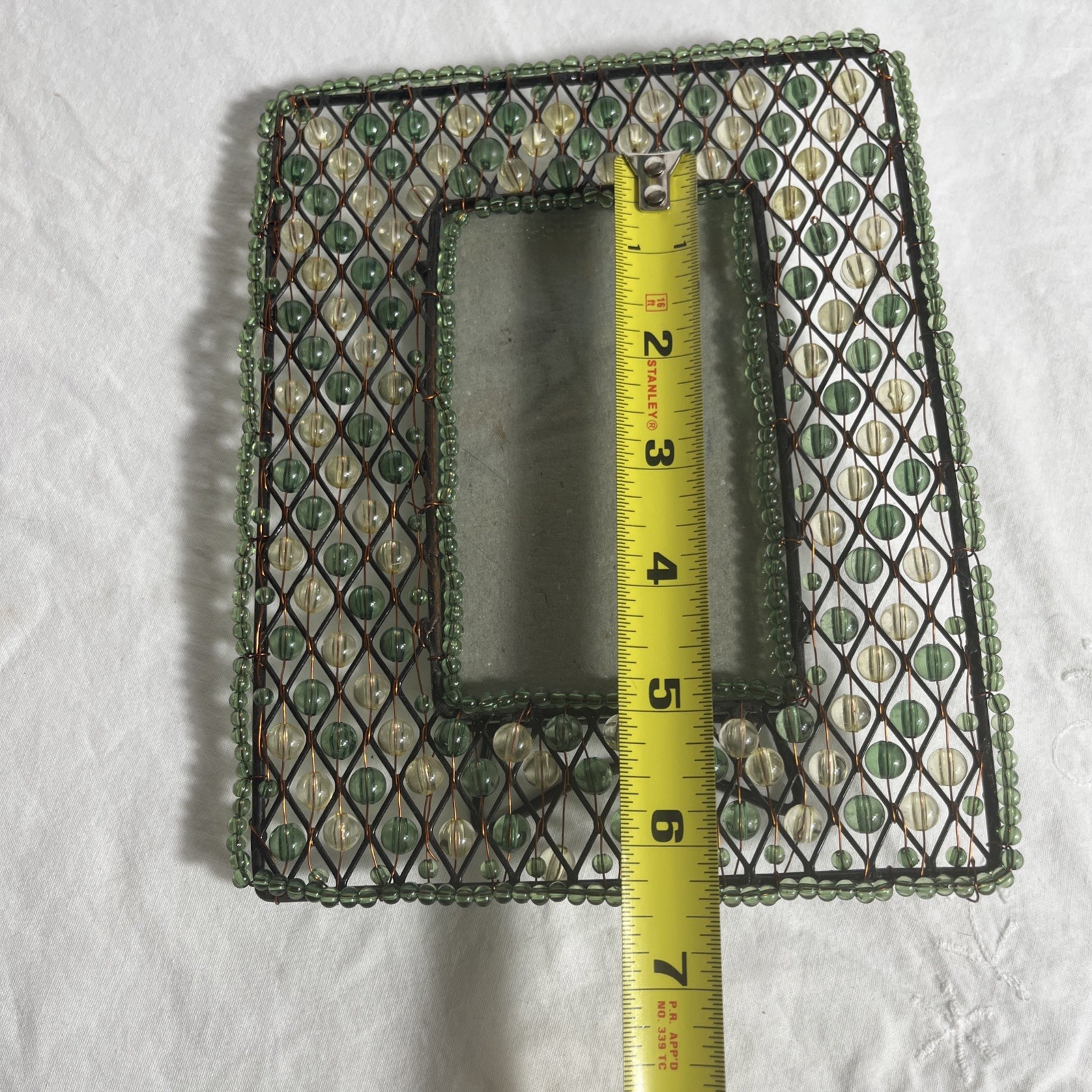 Beaded Metal Picture Frame Green Pearl Glass Beads 4x6 Vintage Style Decor