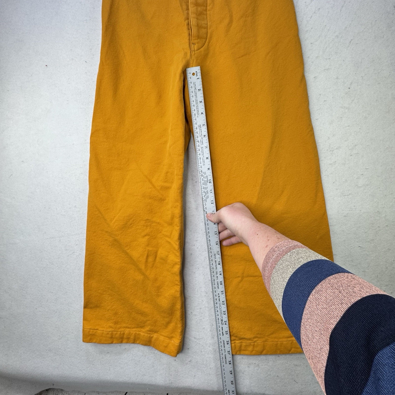 как выглядит 70s Vintage Wide-Leg High Waist Dark Yellow Jean Pants Button Fly 30 Waist 10 фото
