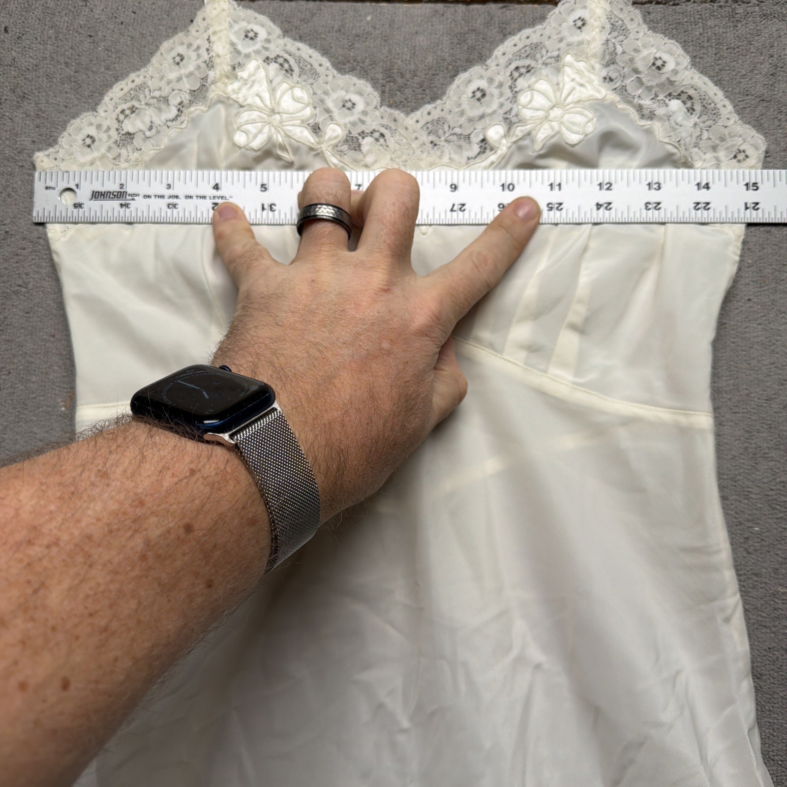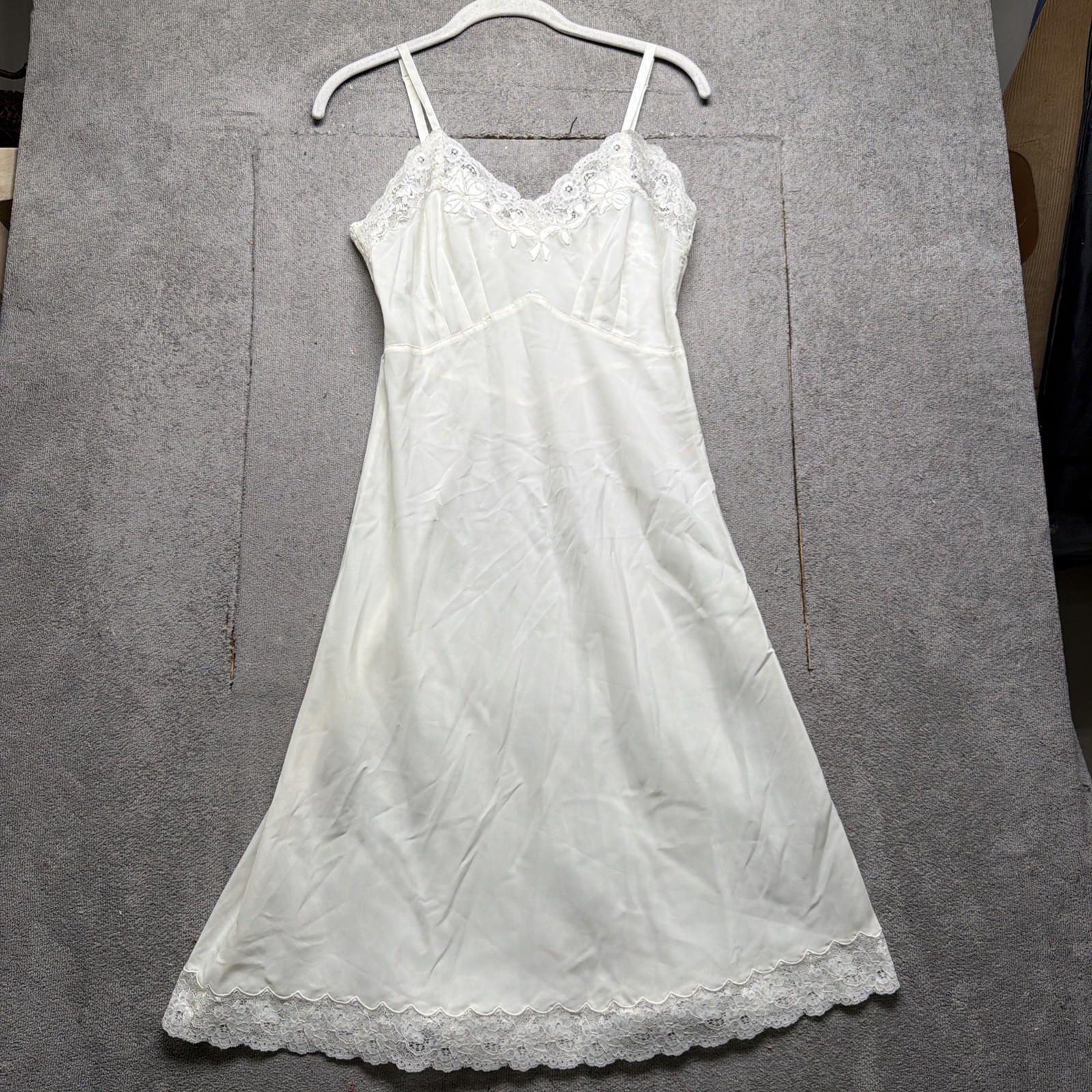 Vintage White Lace Slip Dress 1970s Lingerie Nightgown Spaghetti Strap Small