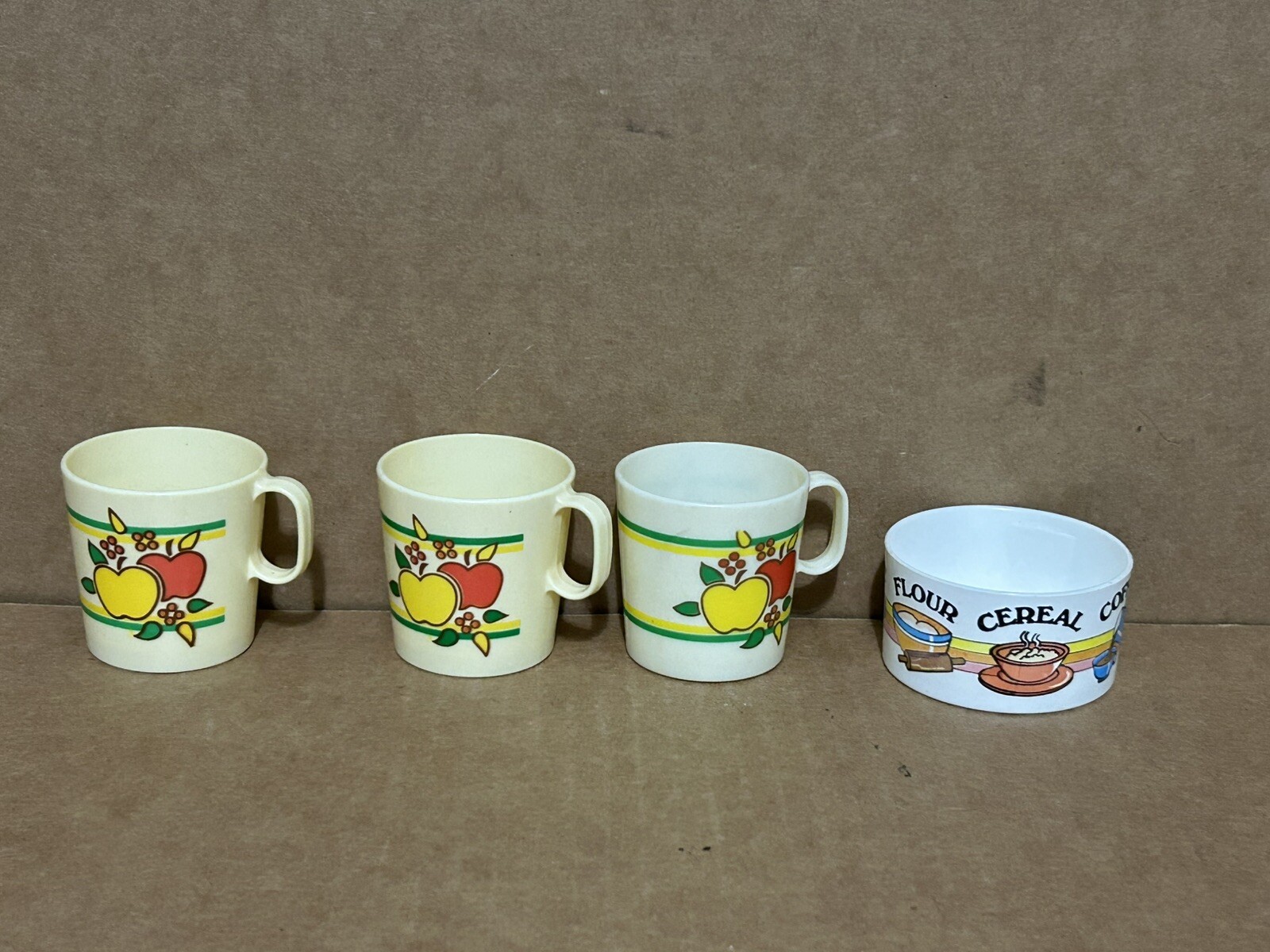 3 Red Yellow Apple Chilton Plastic Toy Cups Small Bowl